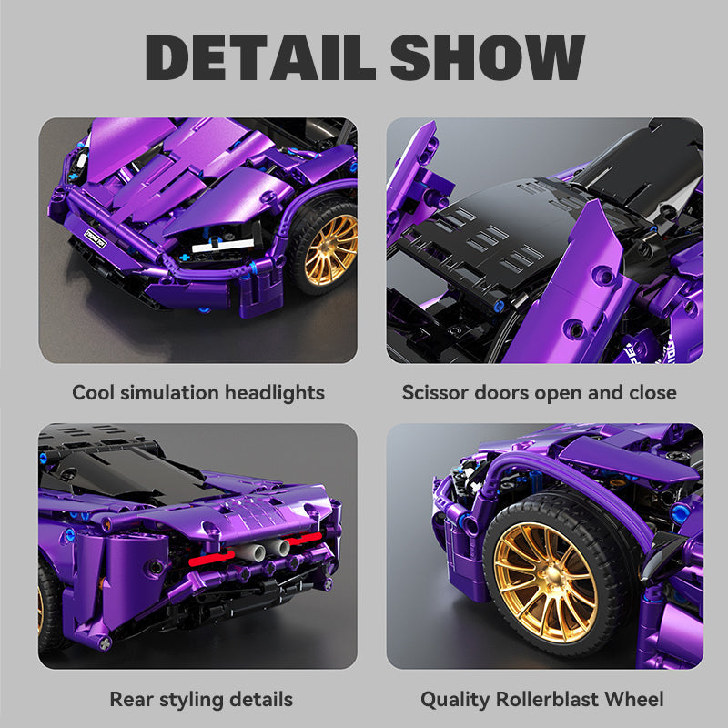 1:14 Purple Phantom Sports Car Building Sets, Collectable Model for Boys Men Teens (1273 Pcs)