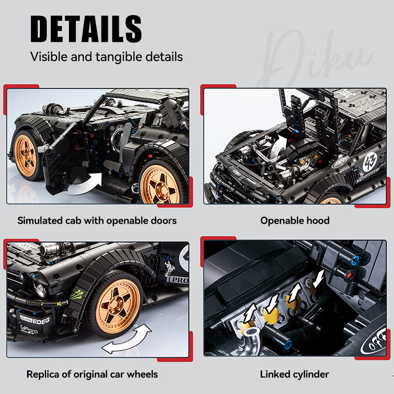 1: 8 HOONIKEN Model Car Set, Giveaway Mini Mustang, A Must Have for Muscle Car Fans (3145Pcs)