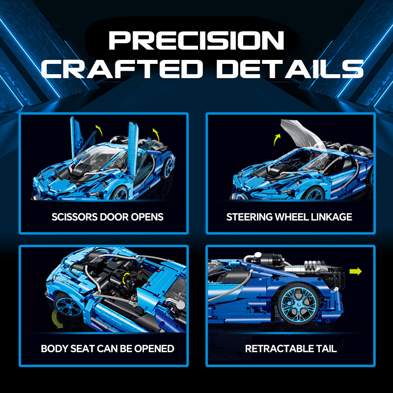 Experience the pinnacle of performance and precision with the 1:8 Jet Bugatti Supercar Building Set — an electrifying tribute to automotive excellence. With 3868 finely crafted pieces, this model captures the soul of the Bugatti in stunning detail, blending luxury, engineering, and dynamic features into one immersive build.