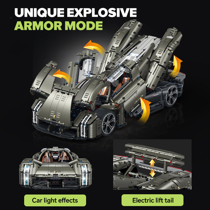 1: 8 Porsche Mission X Supercar Building Sets with Remote Control, Electric lift tail, Electric Lifting Chassis, Electric Door (4056 Pcs)
