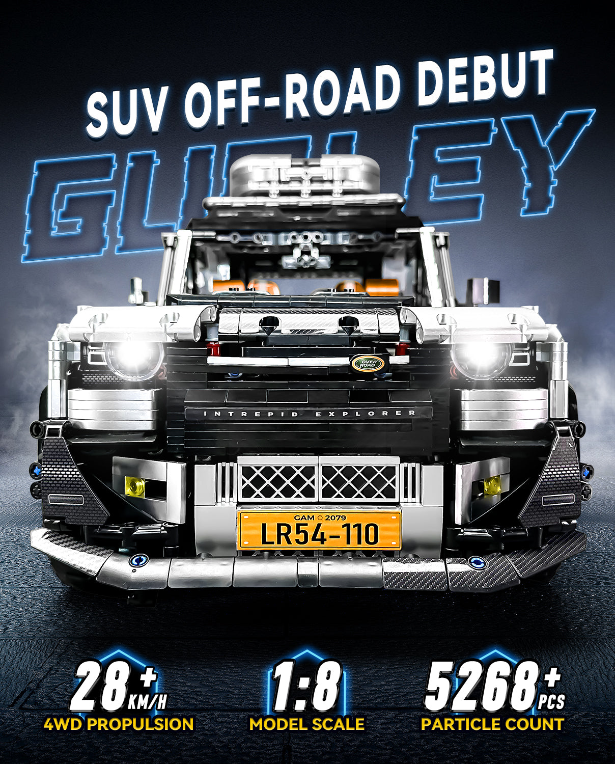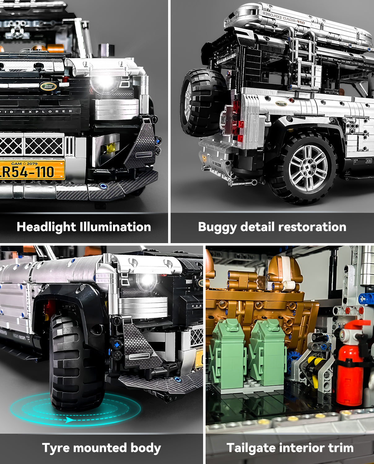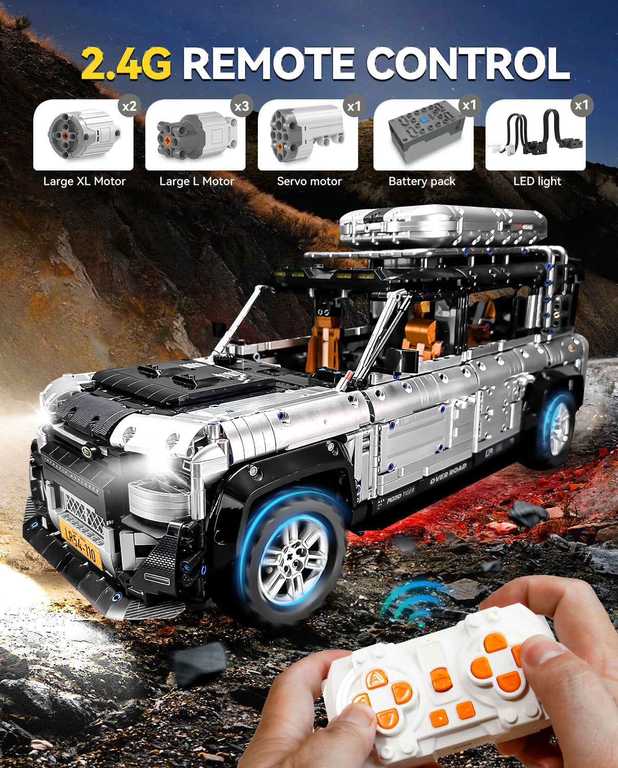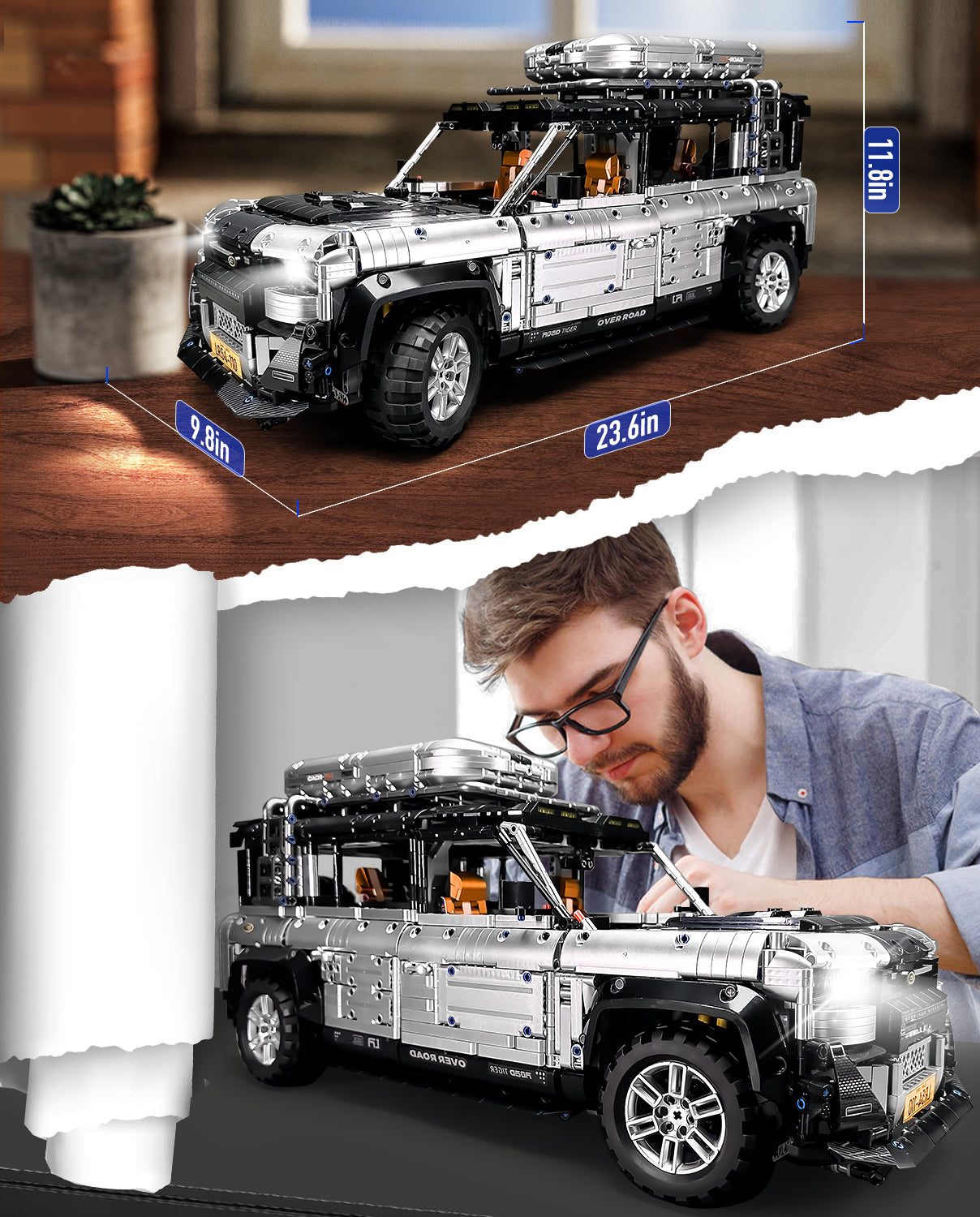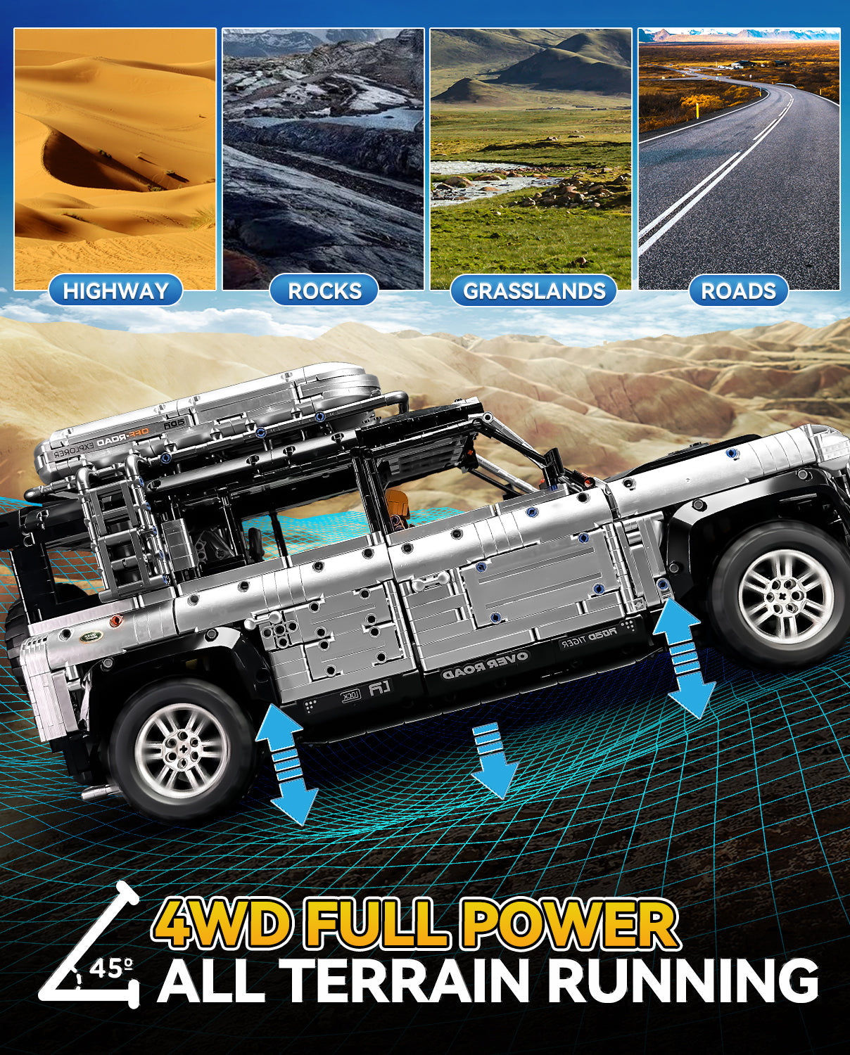 1:8 Land Rover Silver Off-Road MOC Building Blocks and Electric Engineering Toy, Remote Control (5268 Pcs)