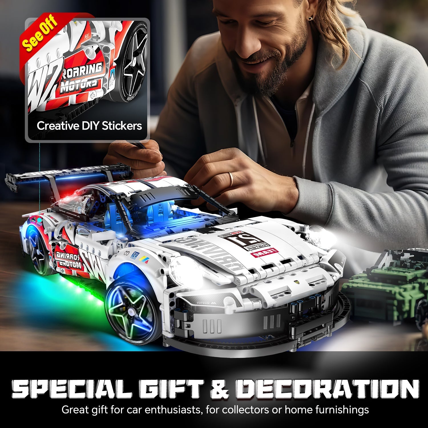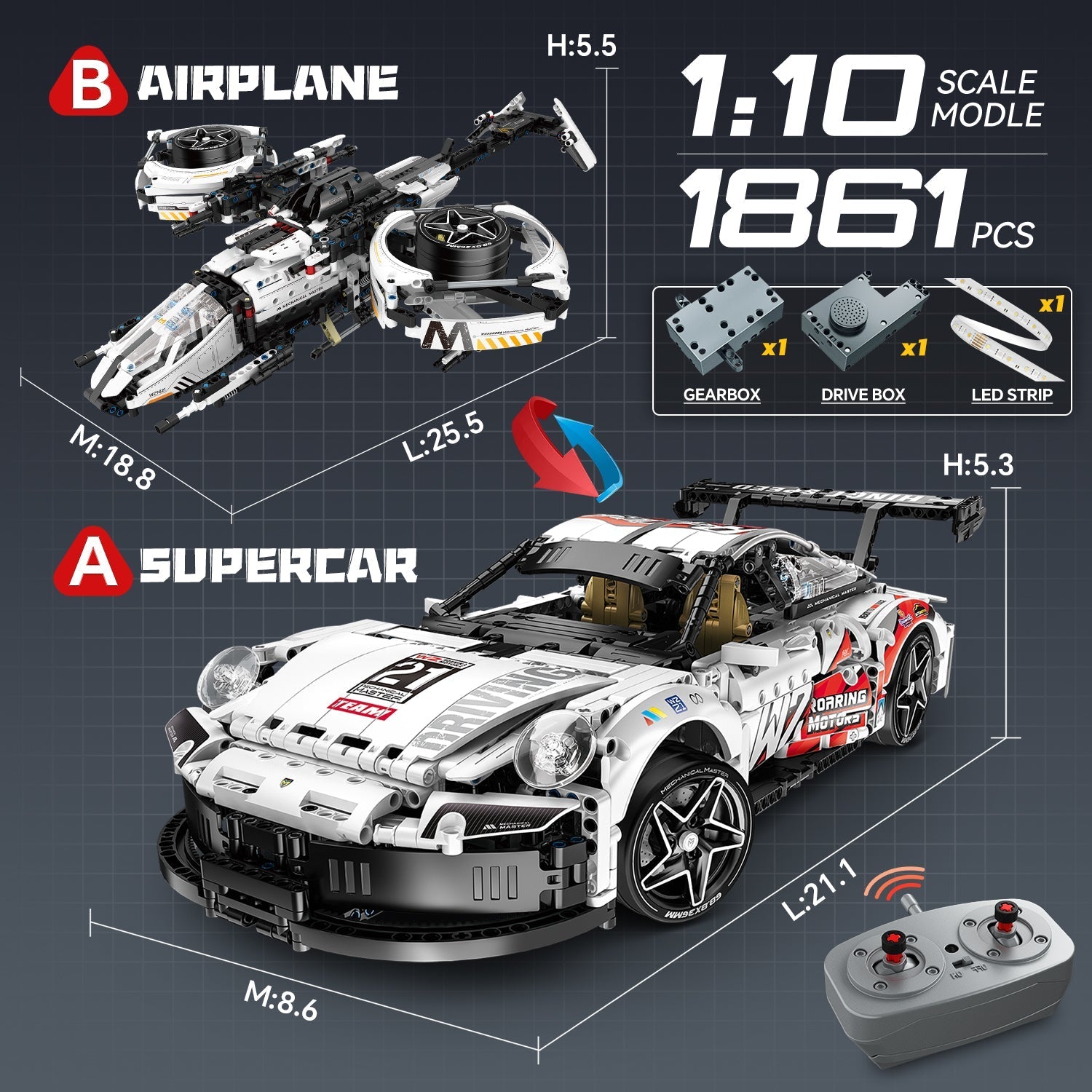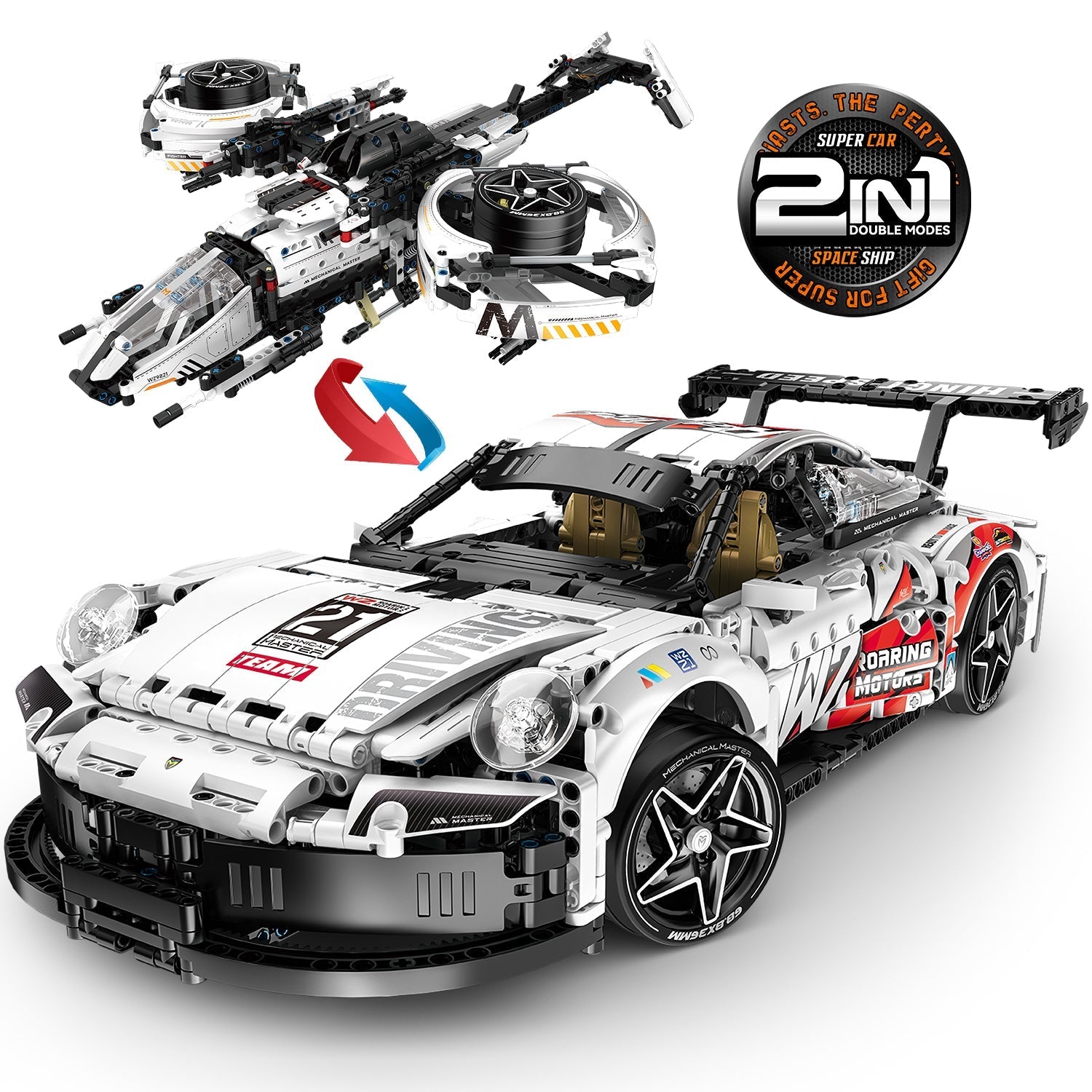2 in 1 Porsche 911 Building Set and Star Space Fighter Building Set, Remote Control, 1860Pcs
