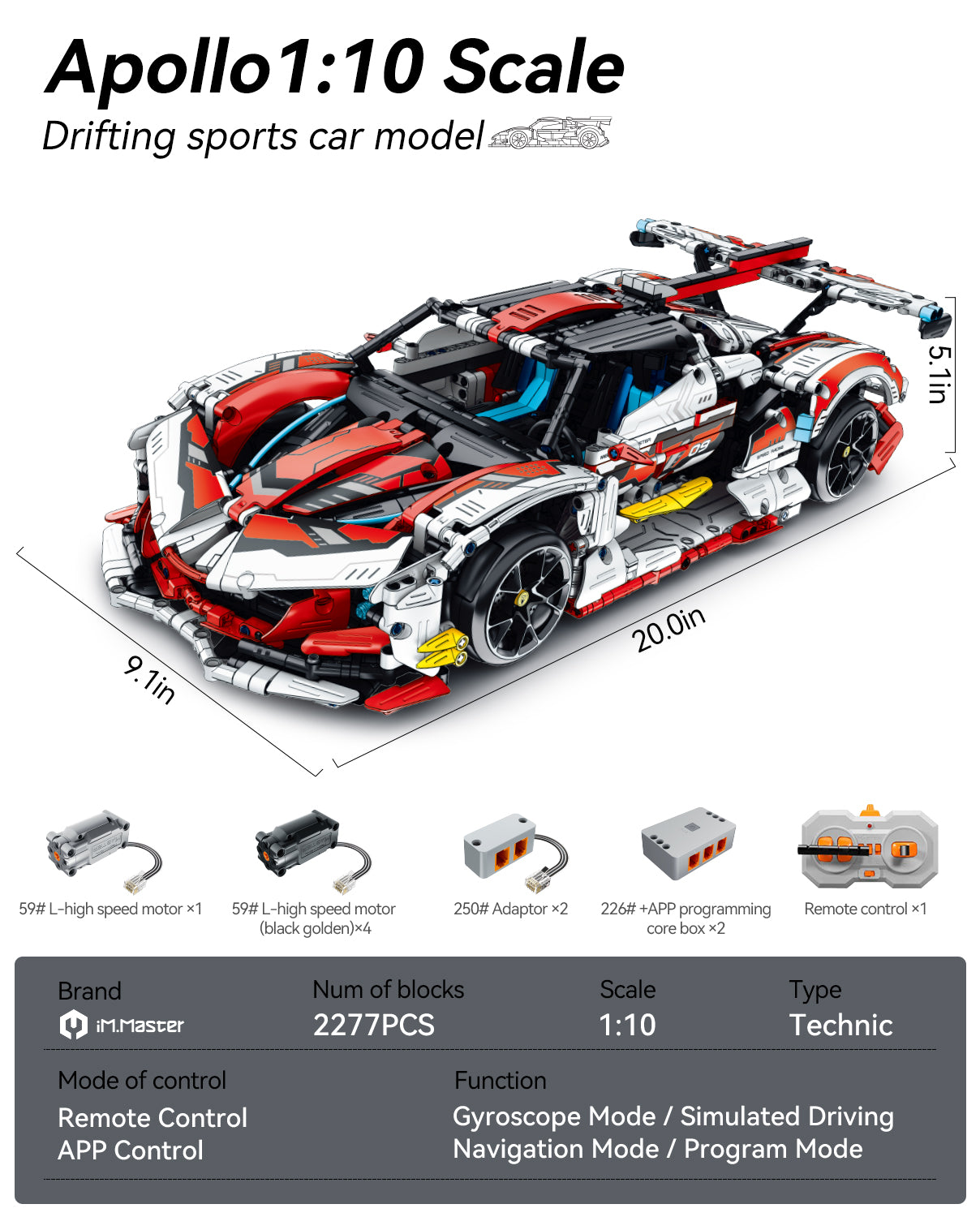 1: 10 Apollo MOC Building Kit, Remote Control Drift, Electric gullwing doors, 2732 Pcs