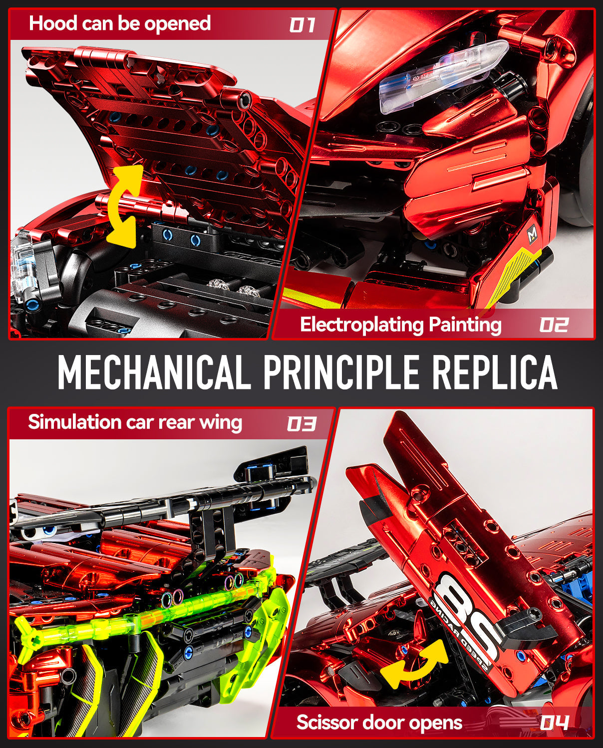 • 【Unique building kit】Crafted with a luxurious look and unique performance, this MOC car building kit is a must-have model and collectible toy car for sports car enthusiasts, tech car enthusiasts and fans. You can assemble this model with your family or friends for a closer relationship in the immersive building process.
