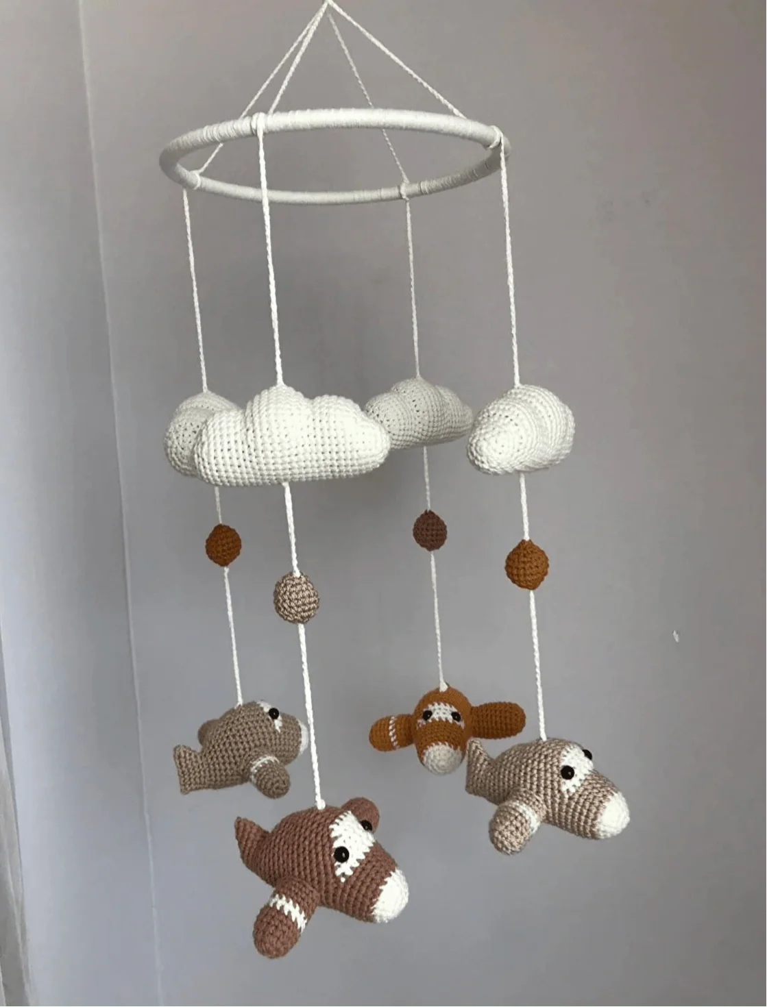 Drift into dreamland with our adorable Crochet Clouds and Planes Baby Mobile! Handcrafted with soft, textured yarn, this whimsical mobile features charming planes and fluffy clouds that will spark your little one's imagination and create a soothing nursery atmosphere.