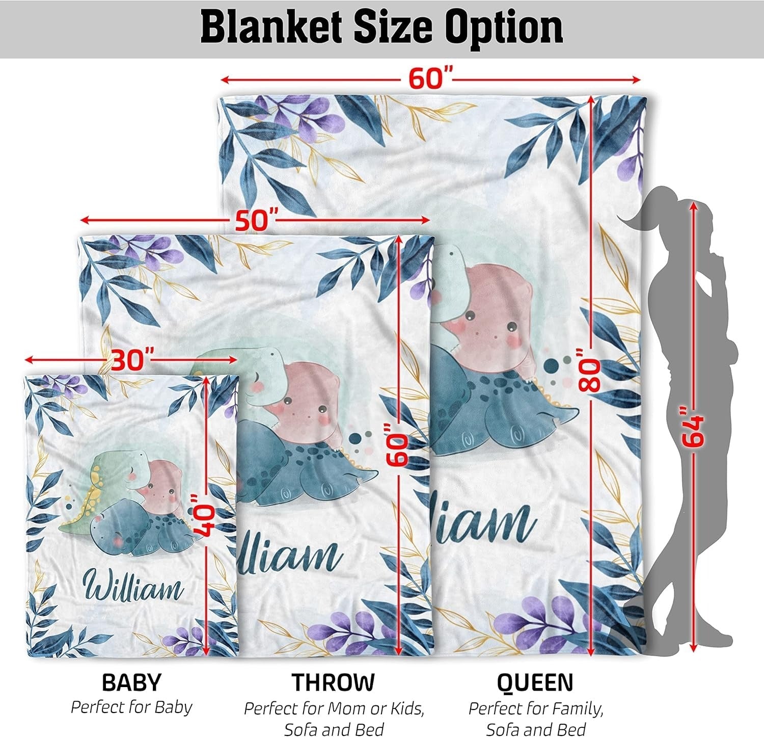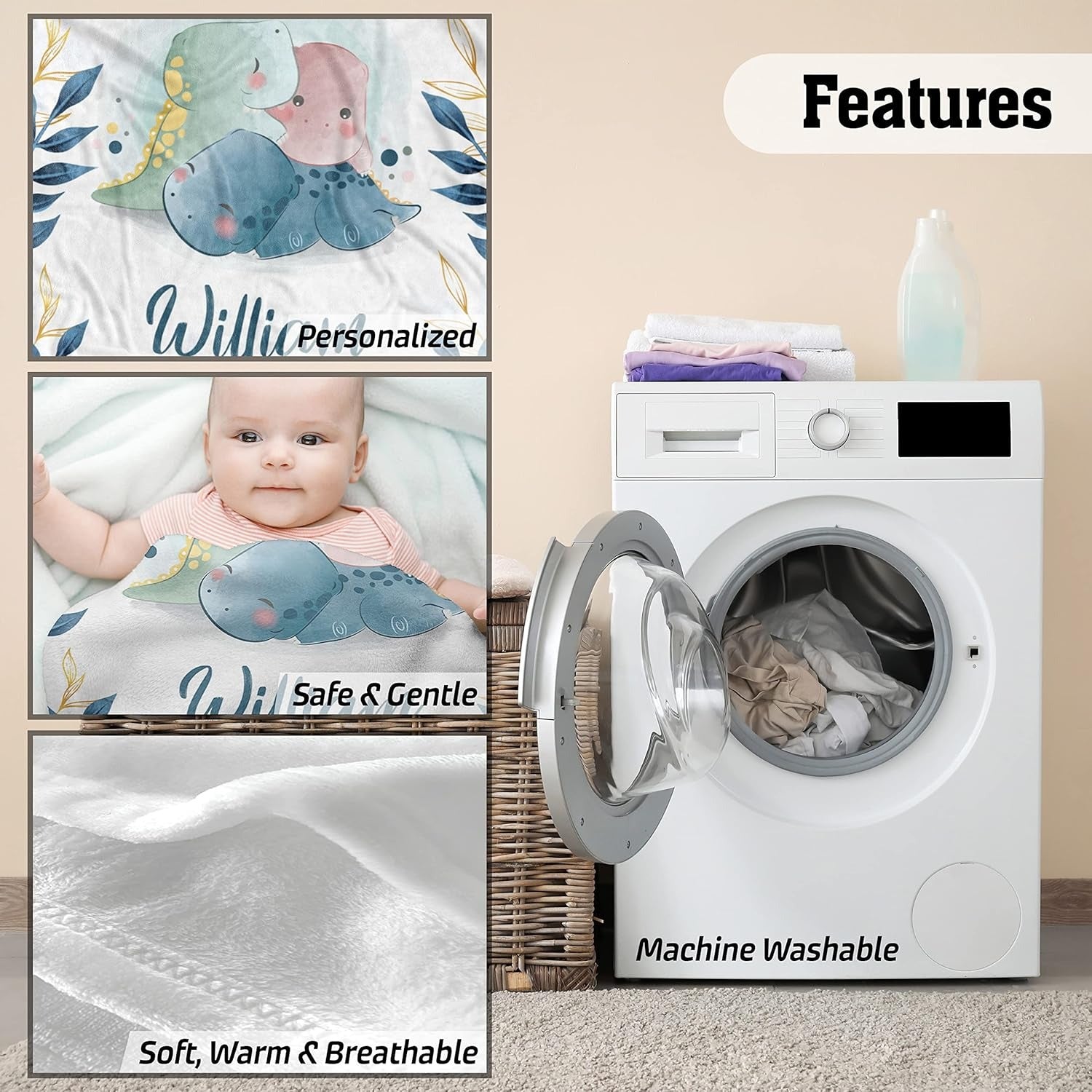 Gift new parents or celebrate your own baby’s arrival with this customized baby blanket with dinosaur design – a cozy treasure to last a lifetime.