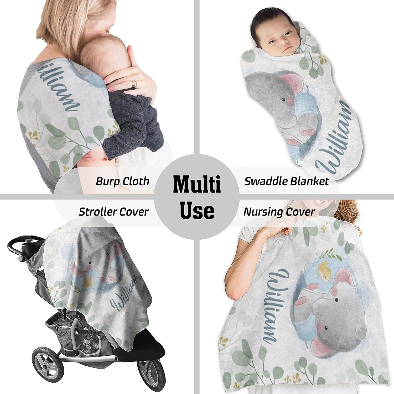 • Multi-use: swaddling, nursing cover, stroller shade, burp cloth