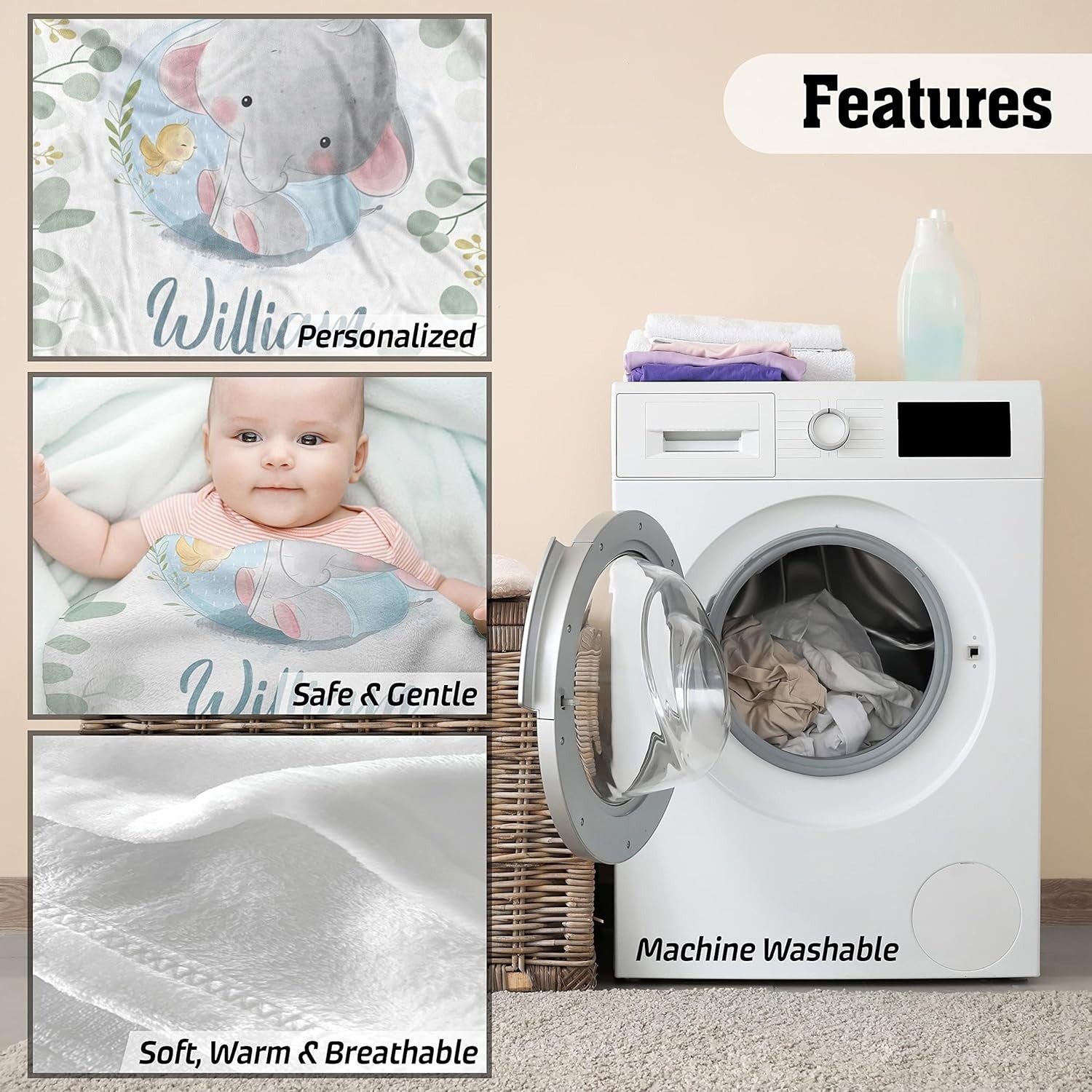 • Machine washable with high-quality print that won’t fade