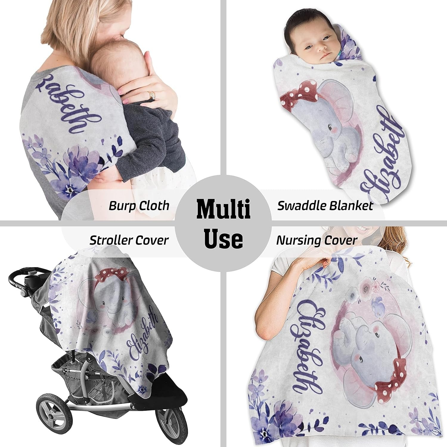 Custom Baby Girl Blanket with Name – Elephant & Floral Design