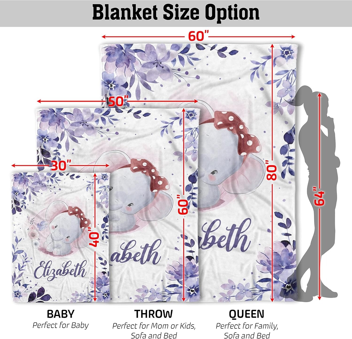 Personalized Baby Girl Blanket with Name – Custom Elephant & Floral Design in Soft Fleece (Elizabeth)