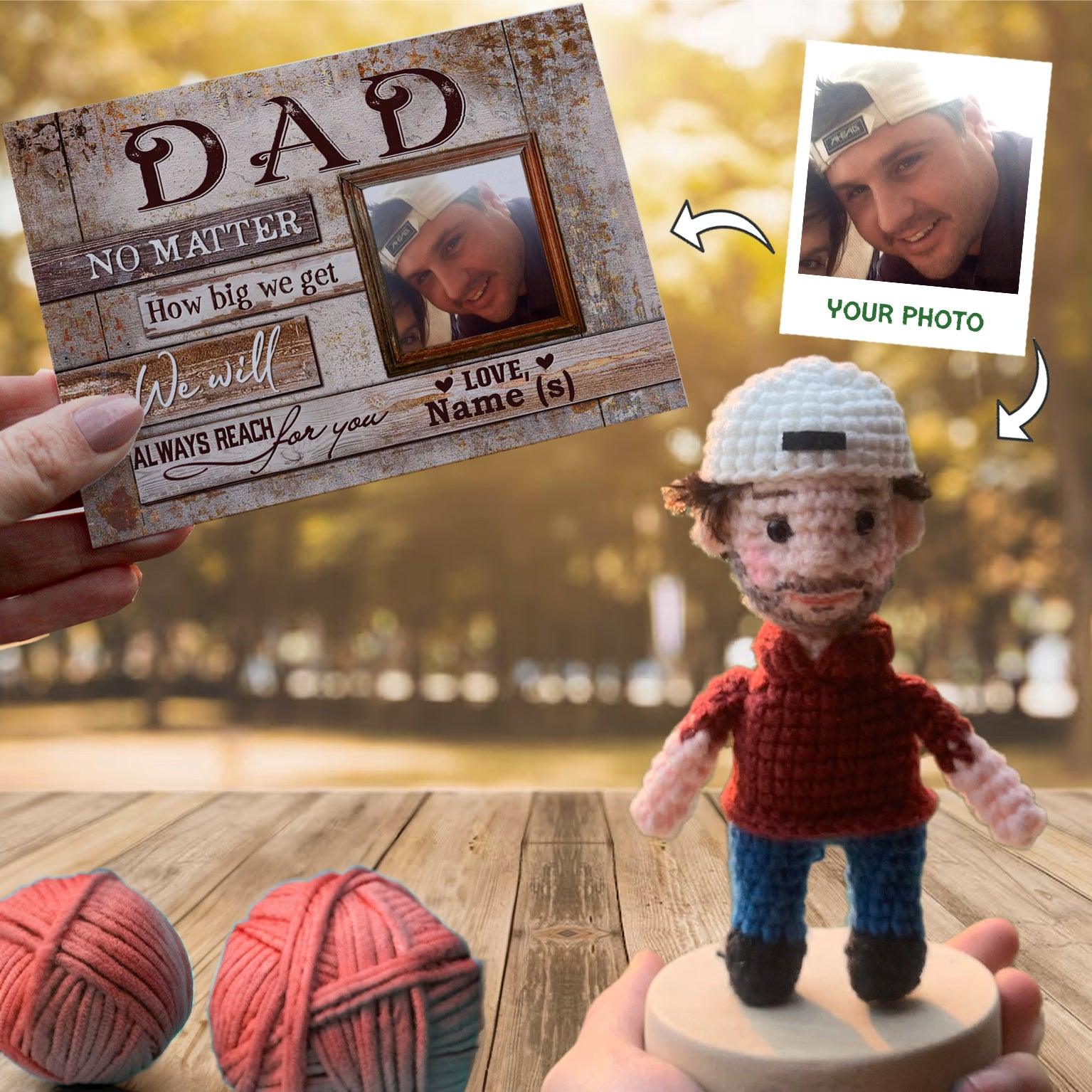 Personalized Crochet Doll with Photo Card "Dad No Matter How Big We Get"