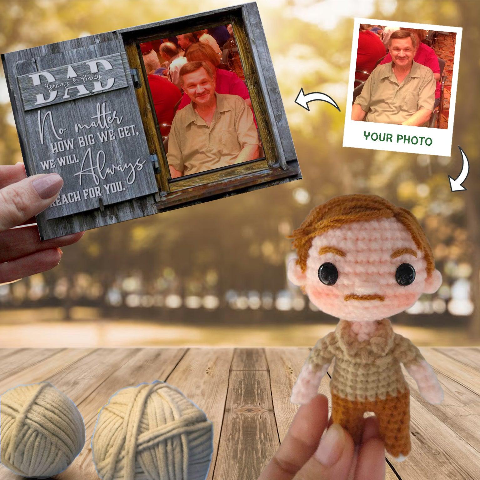 Personalized Crochet Doll with Photo Card "Dad No Matter How Big We Get 2"
