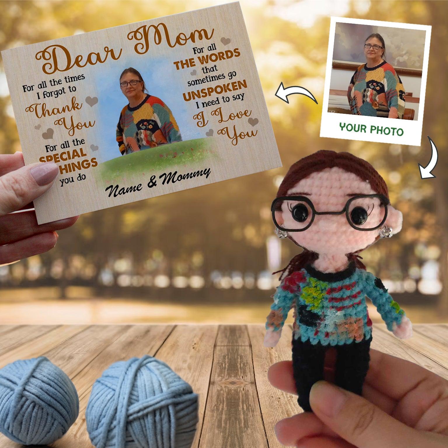 Personalized Crochet Doll with Photo Card "Dear Mom I love You"