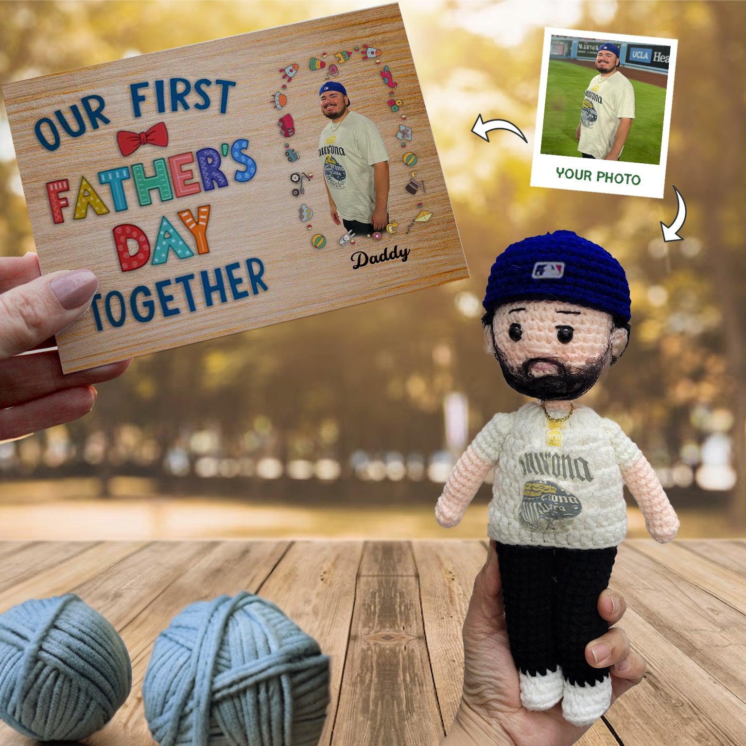 Personalized Crochet Doll with Photo Card "Our first Father's day together"