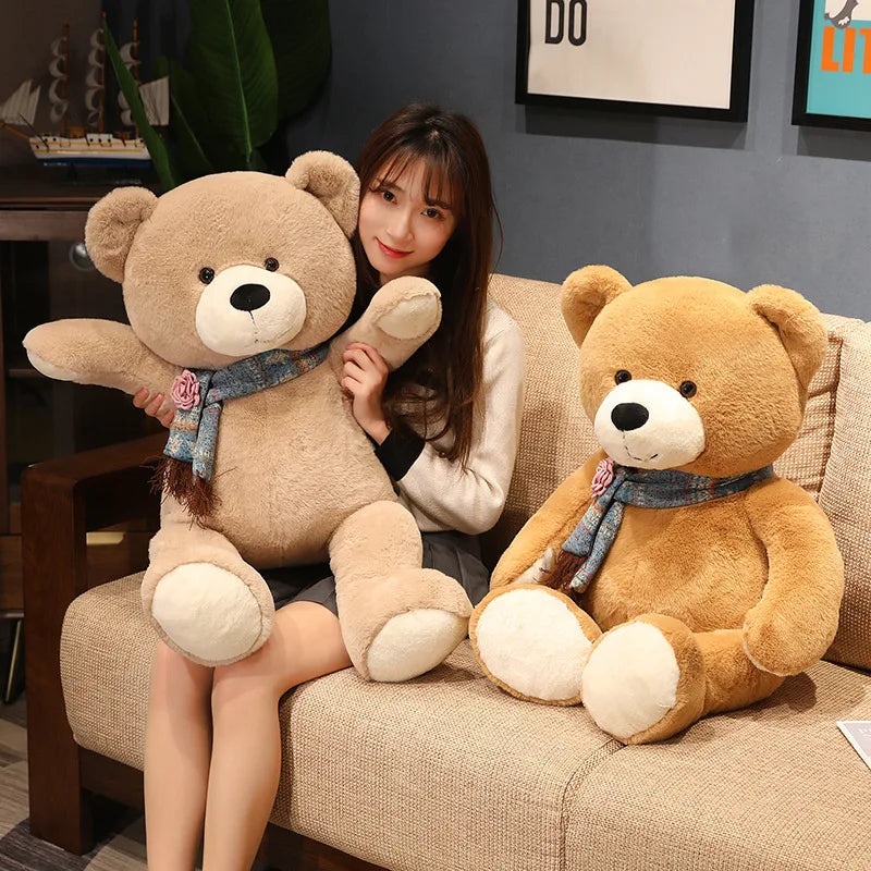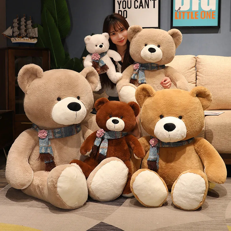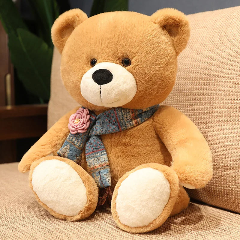Fluffy Buddy Bear Plushies with Floral Scarf