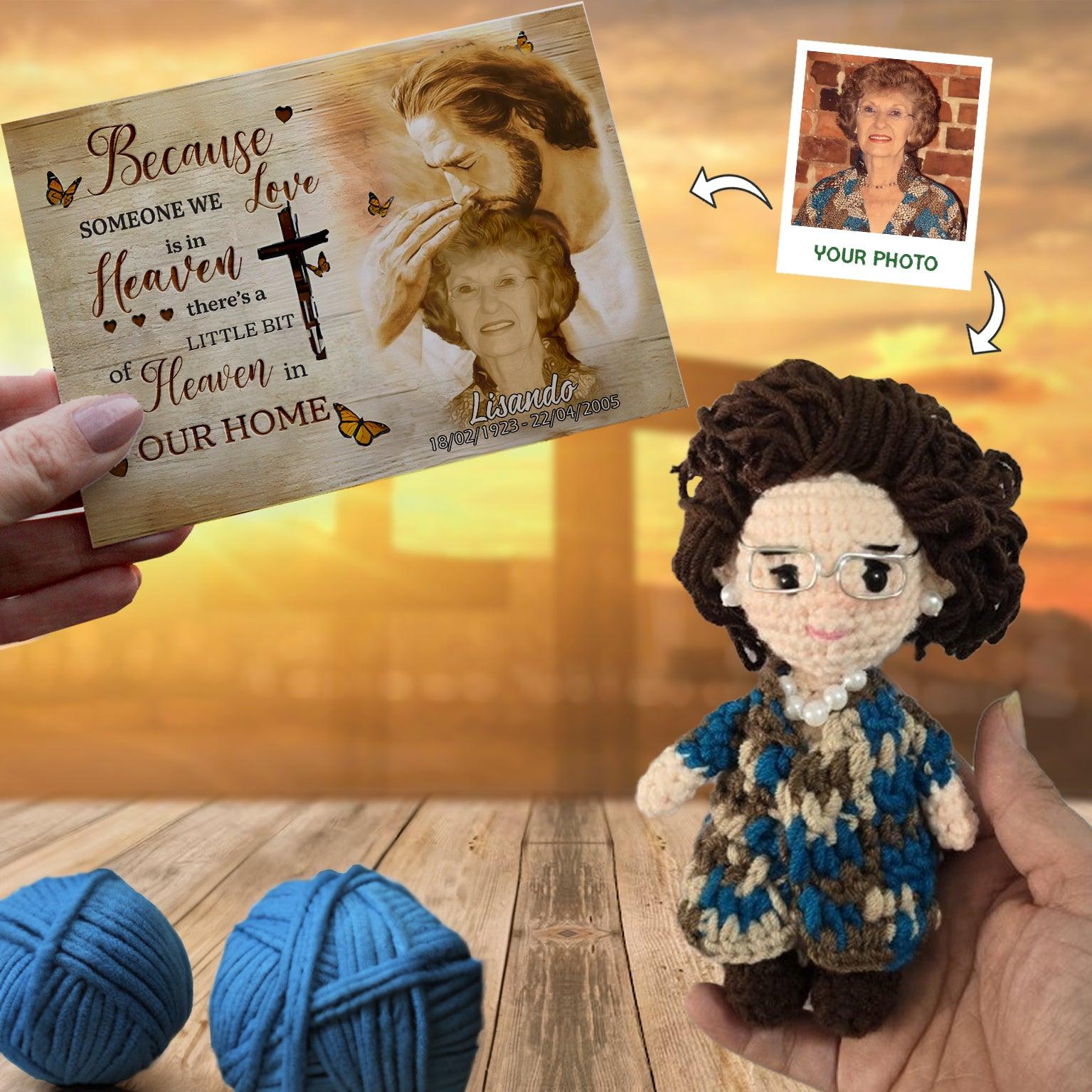 Personalized Crochet Doll with Photo Card "For GOD Because Someone We Love Is In Heaven"