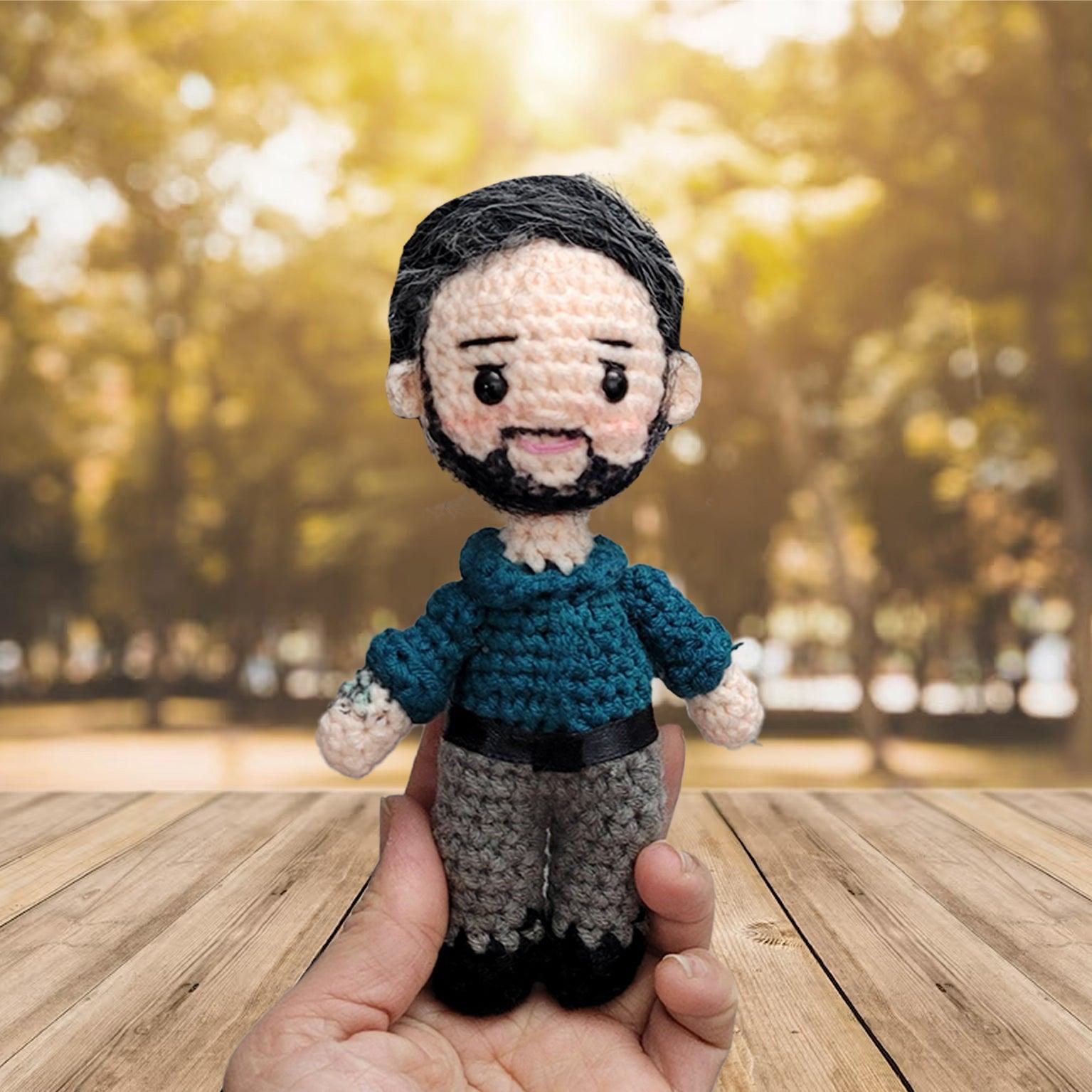 Personalized Crochet Doll with Photo Card "Forever My Dad Forever My Hero"