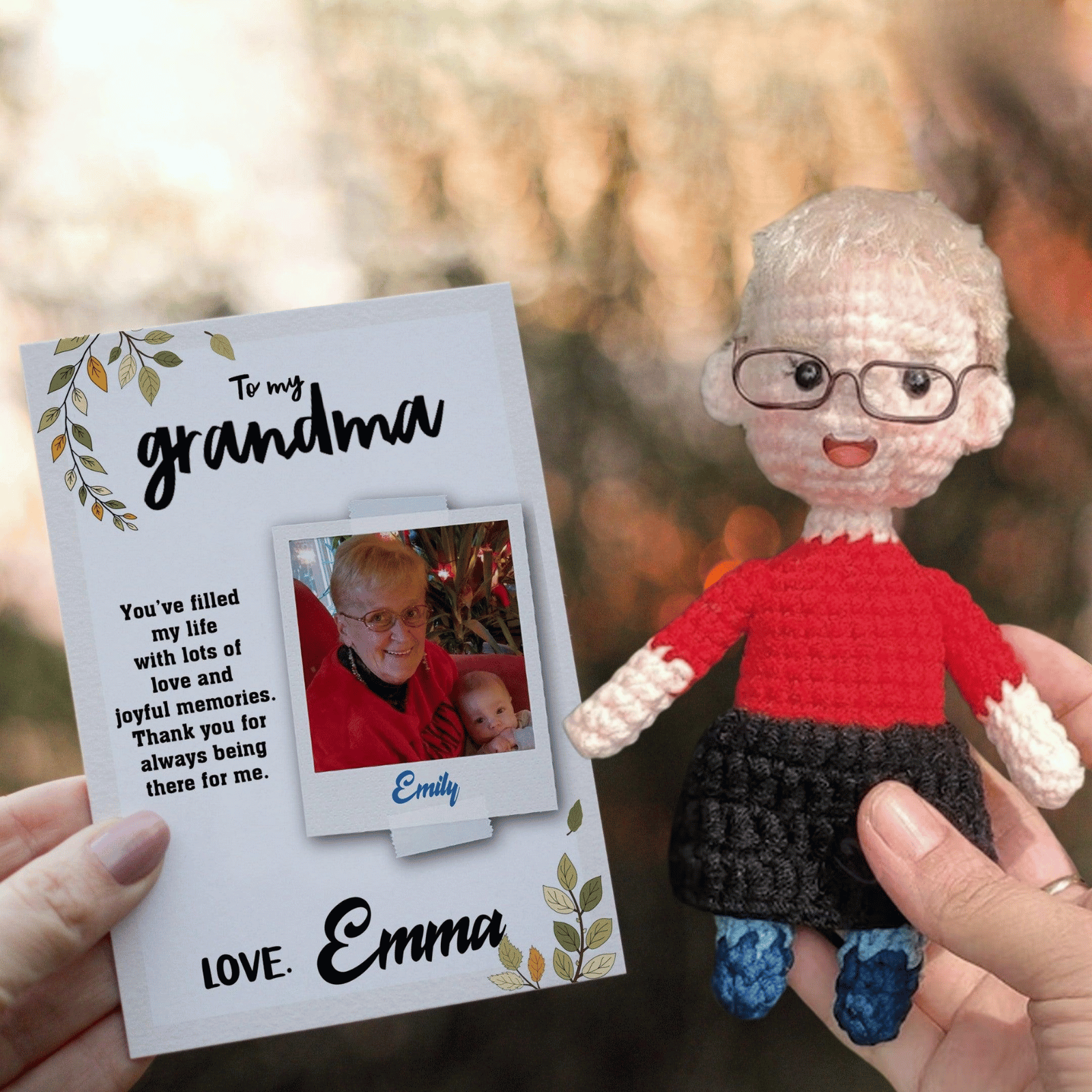 Personalized Crochet Doll with Photo Card "To My Grandma"