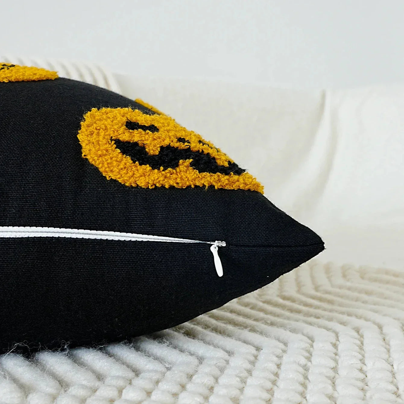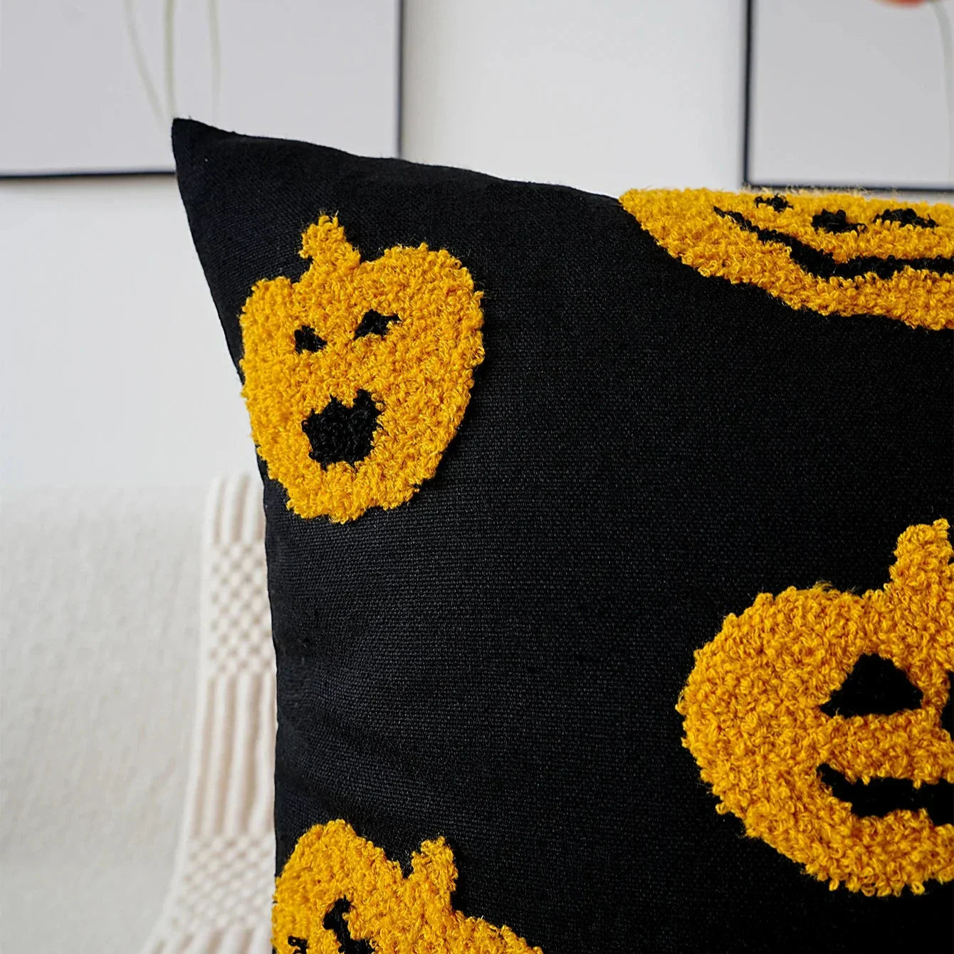 Bring a piece of the pumpkin patch into your living room! This Halloween pillowcase features cheerful embroidered jack-o'-lanterns that pop against the black background, making your space look spook-tacularly festive. With its comfy polyester fabric and design, it’s sure to bring a smile to your face every time you sit down.