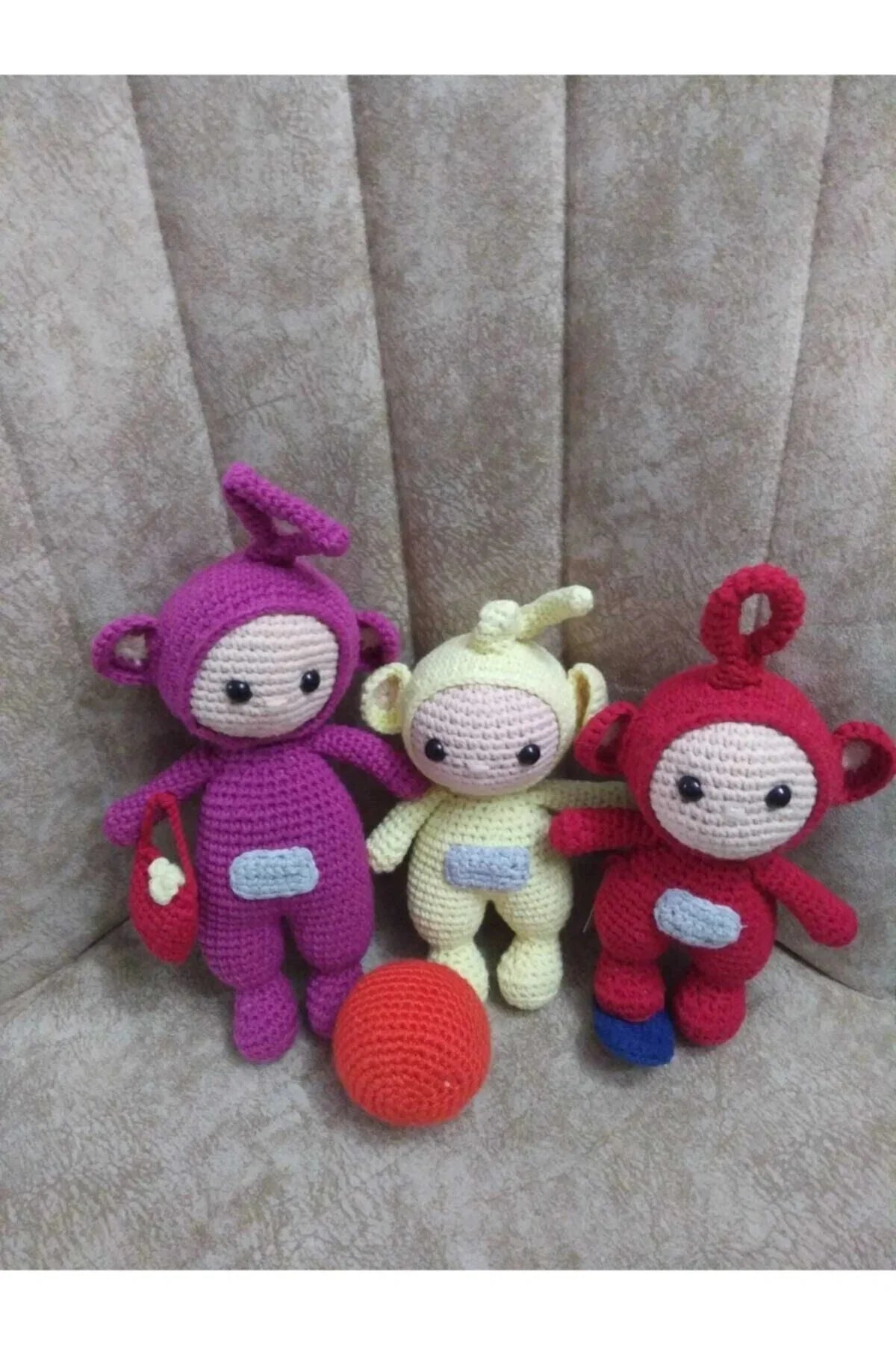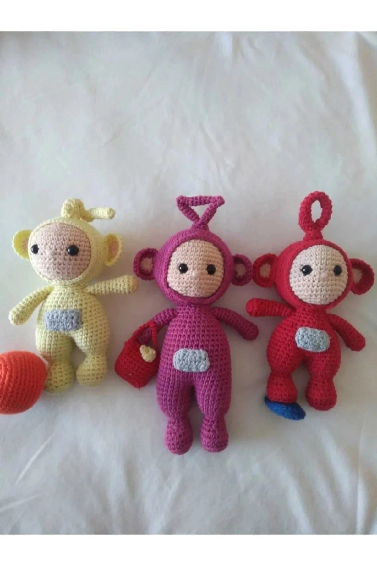 Relive childhood nostalgia with these adorable handmade crochet Teletubbies! Meticulously crafted in vibrant yellow, pink, and red, each plush character features intricate stitching and charming details. Perfect for collectors and fans of the beloved TV series.