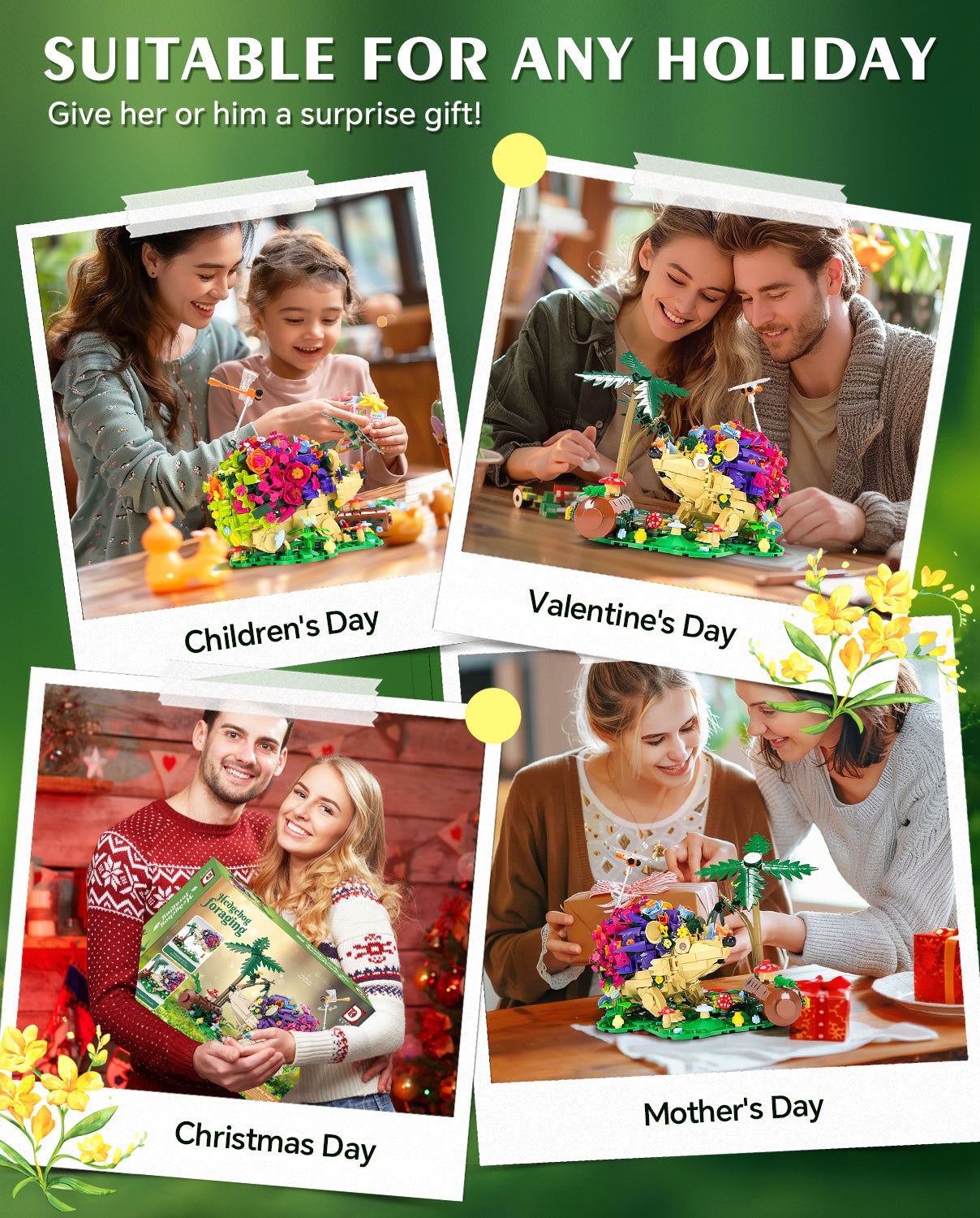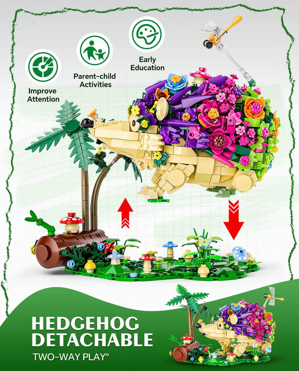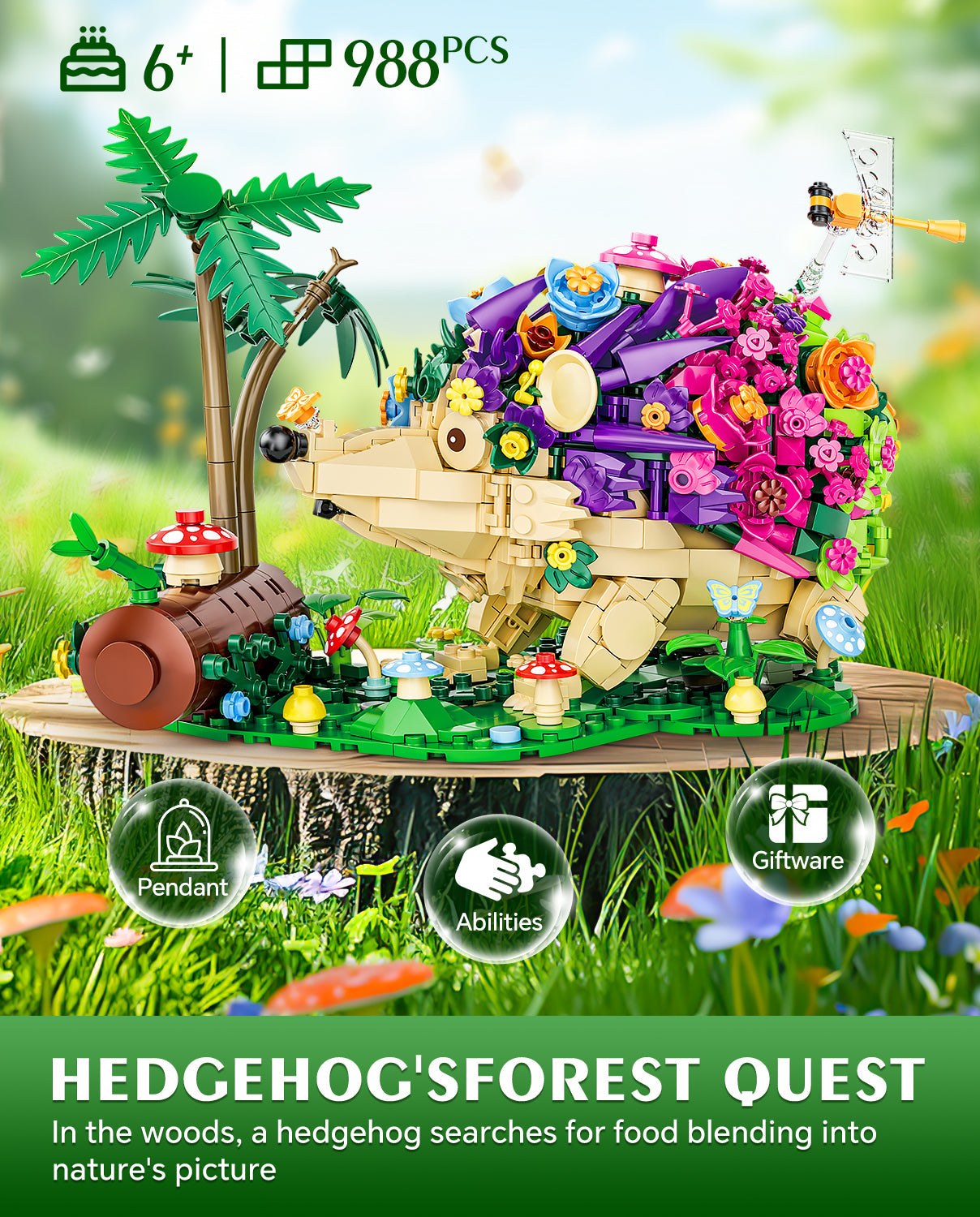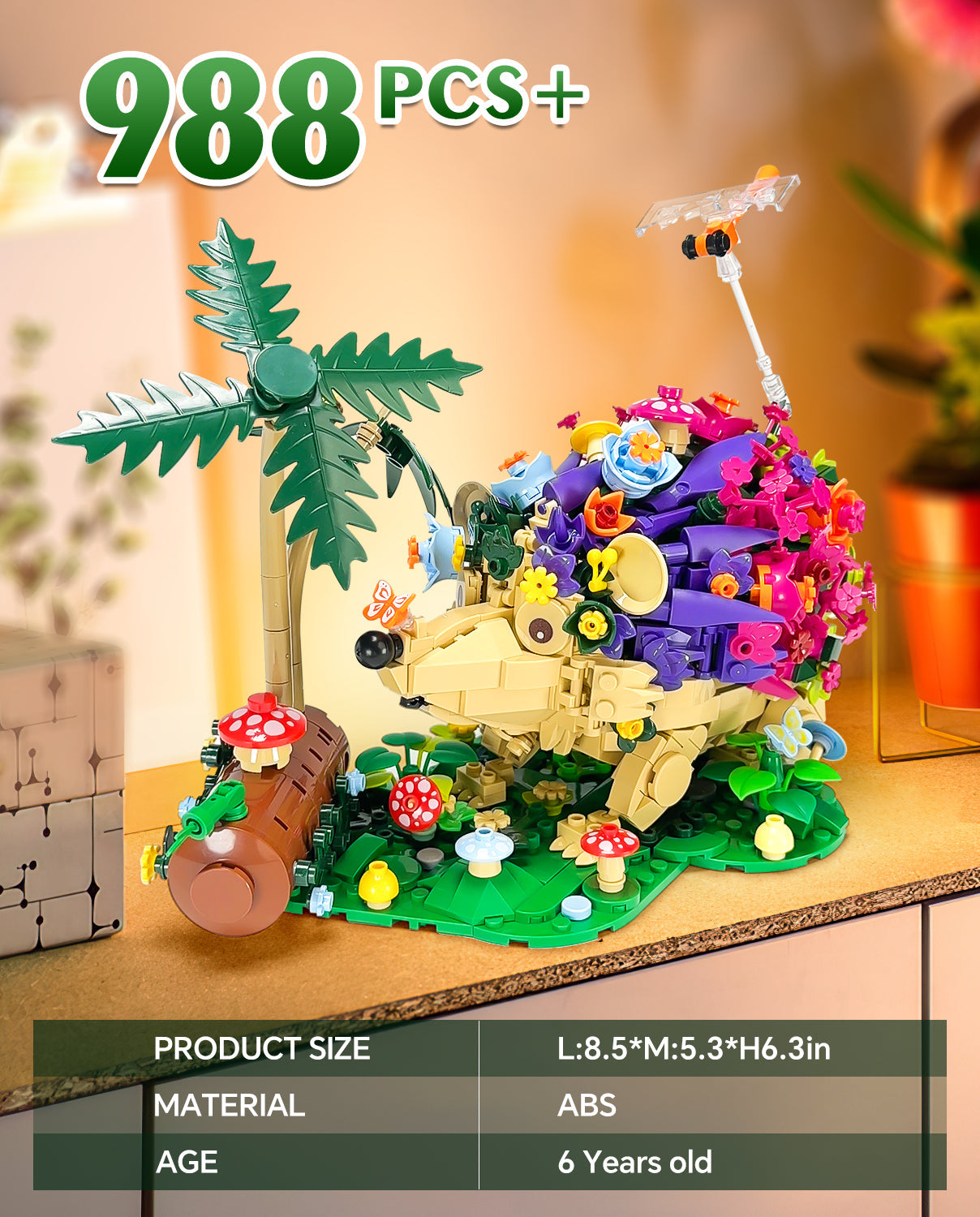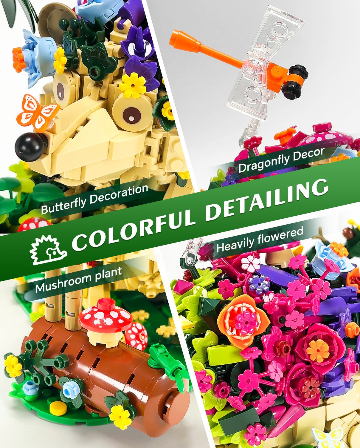 Hedgehog Flowers Building Set, Cute Insects Animals Collection Model Jungle Animal Crossing Building Kit (988 Pcs)