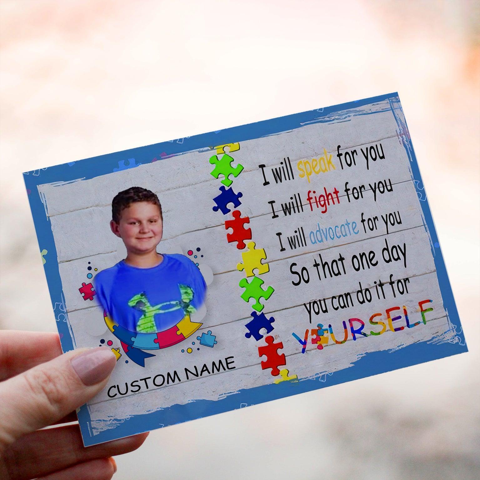 Personalized Crochet Doll with Photo Card "I Will Speak For You Autism Awareness"