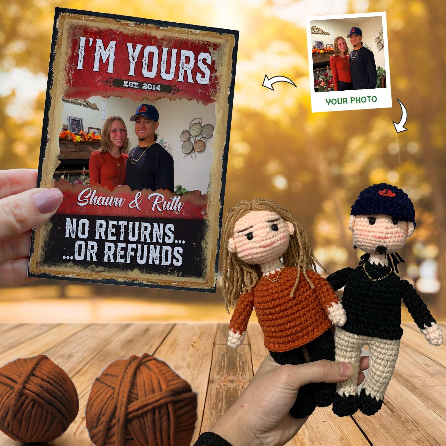 Personalized Crochet Doll with Photo Card "Im Yours No Returns"