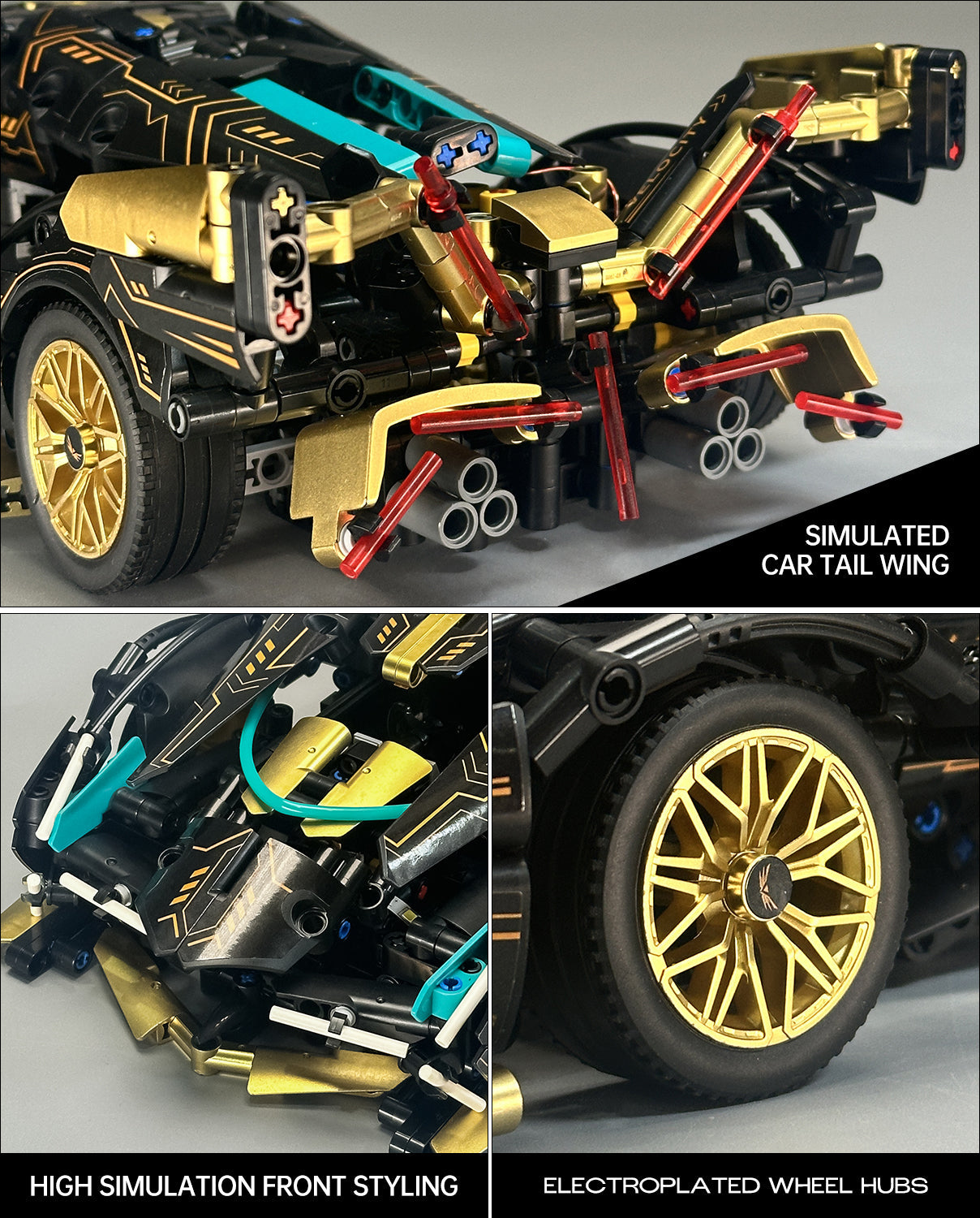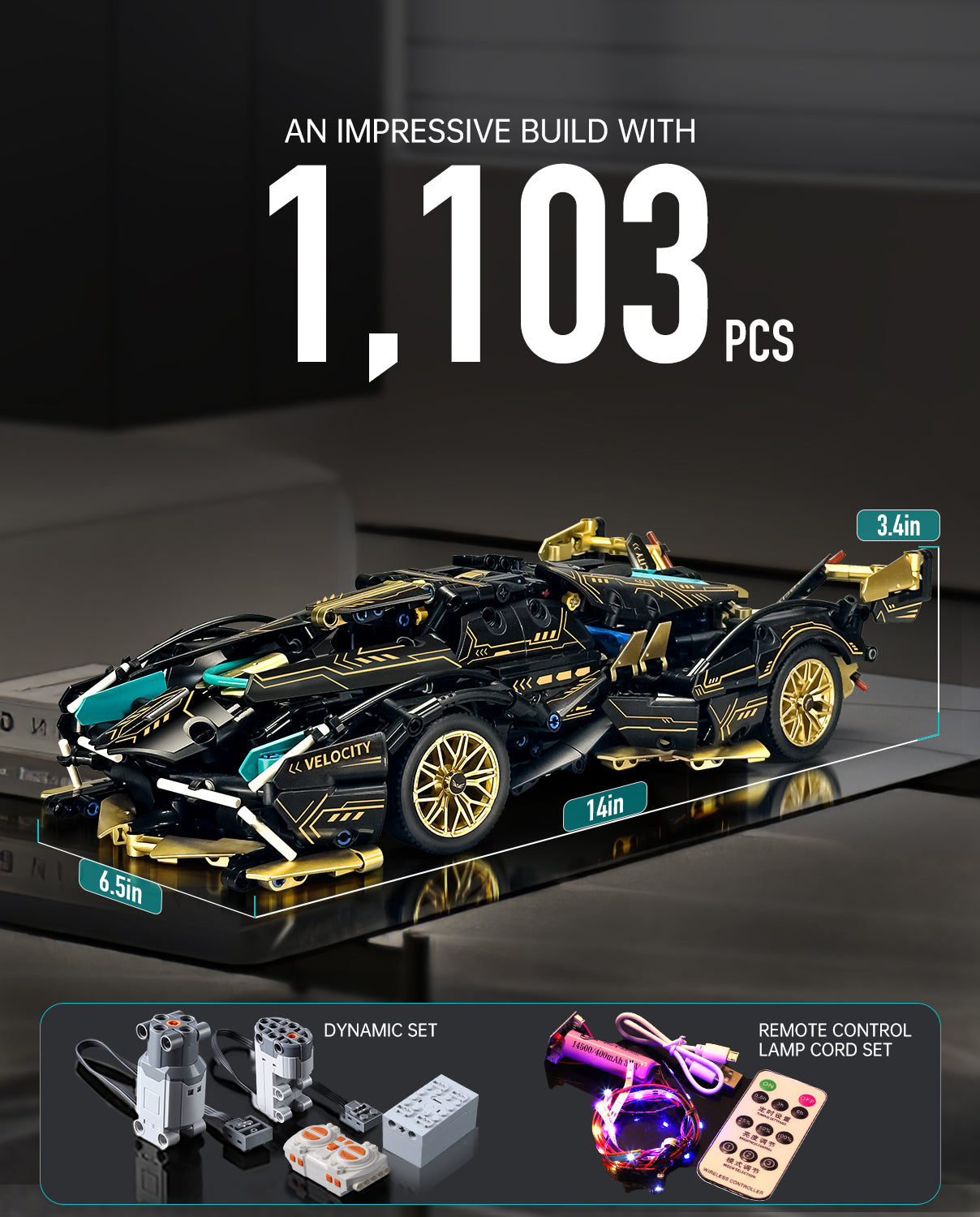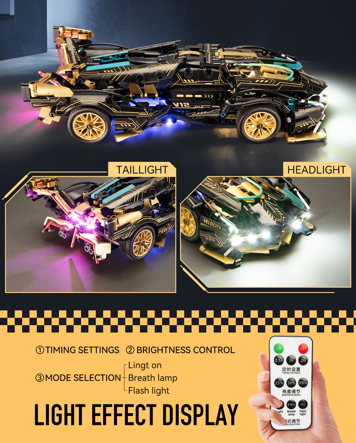 Lamborghini V12 MOC Set with Remote Control and LED Kit, 1:14 Car Model for Boys Men, 1124Pcs