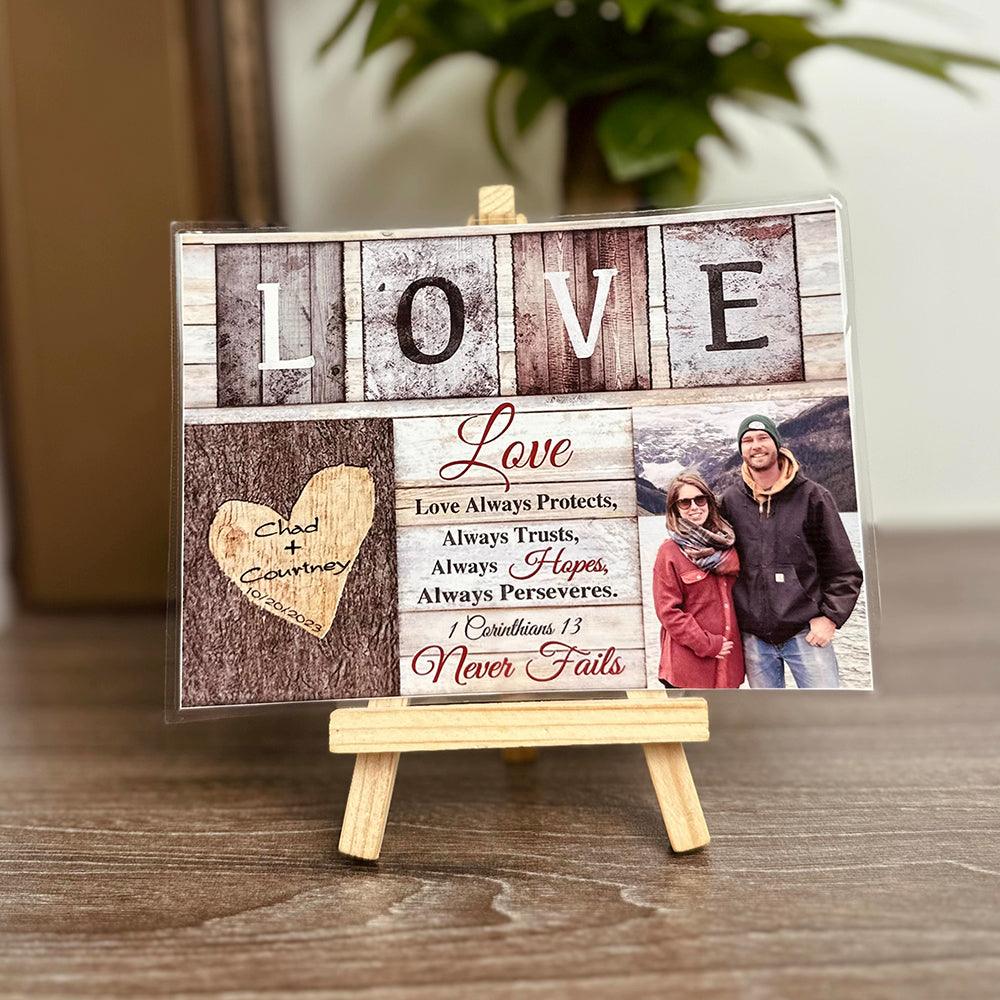 Personalized Crochet Doll with Photo Card "Love Never Fails 1 Corinthians 13"
