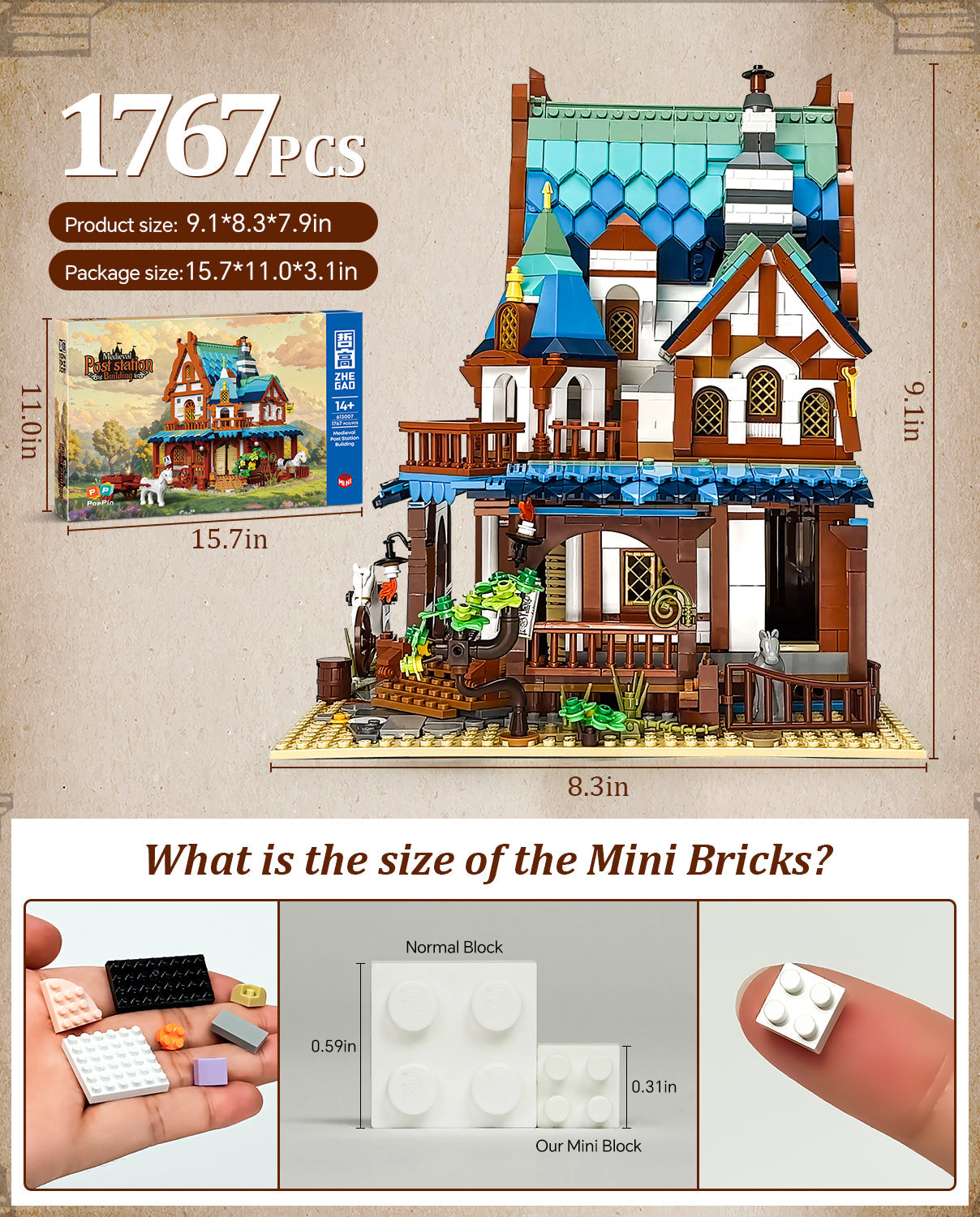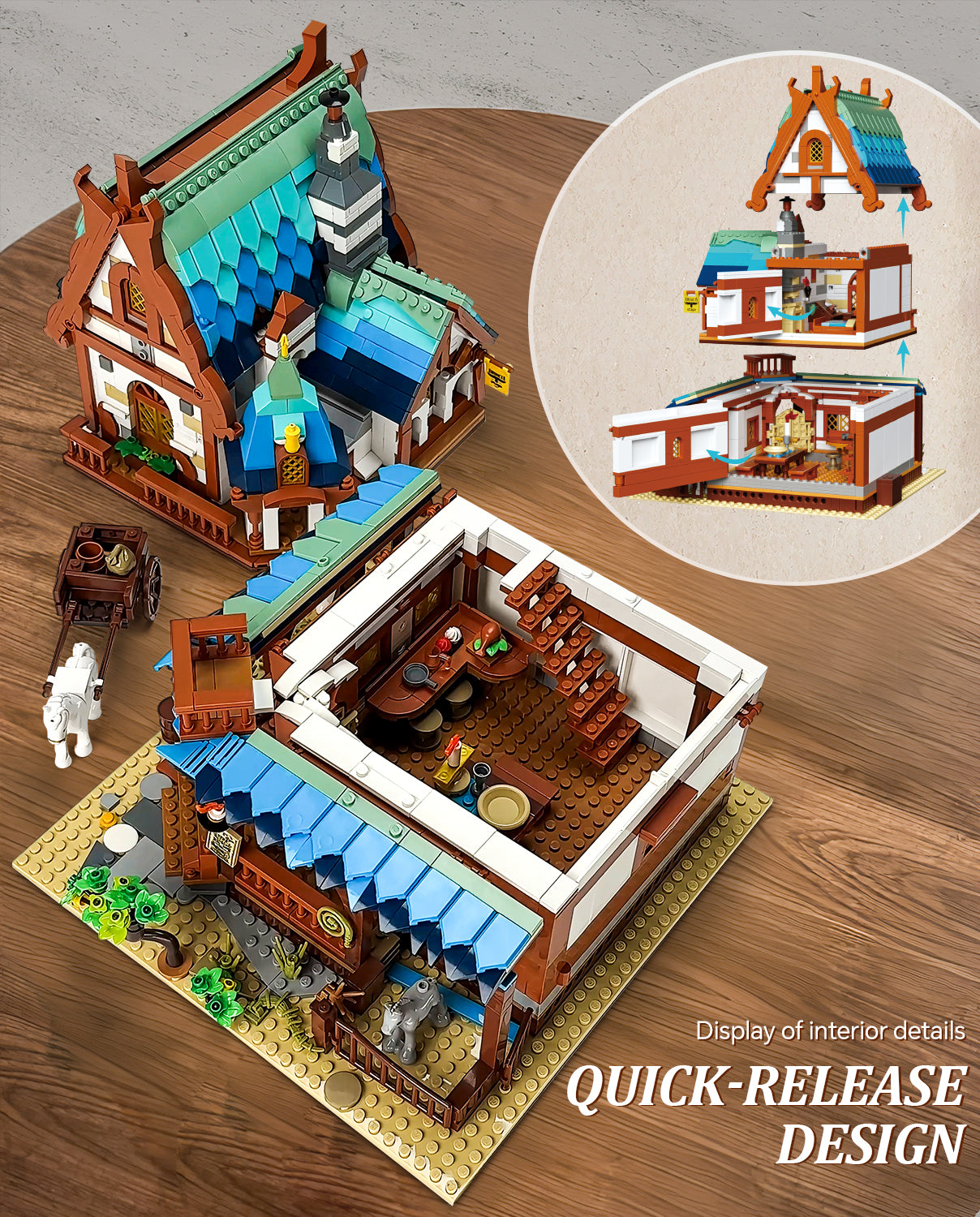 Medieval Architecture Coaching Inn Building Blocks, Collectible Gift Toy Model Set with Light (1767 Pcs)