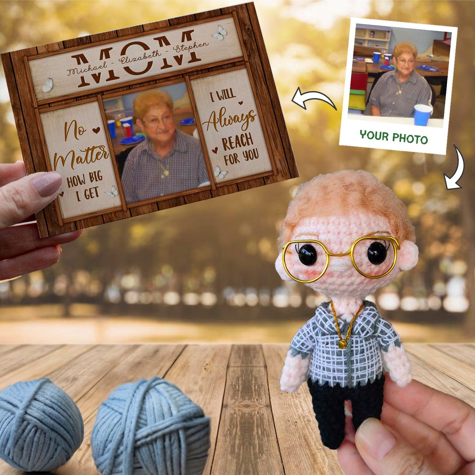 Personalized Crochet Doll with Photo Card "Mom I Will Always Reach For You"