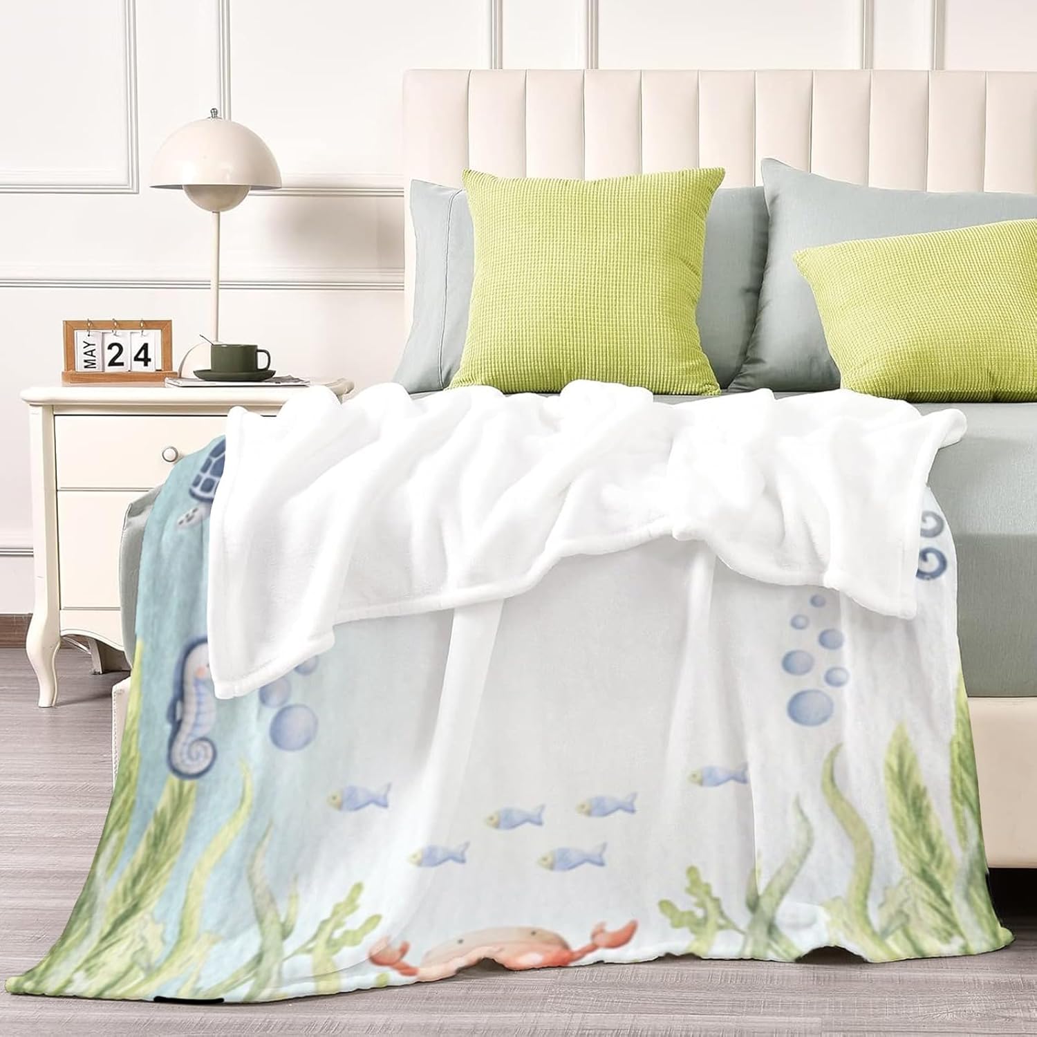 Personalized Baby Blanket with Name for Girls, Custom Blue Ocean Baby Blanket