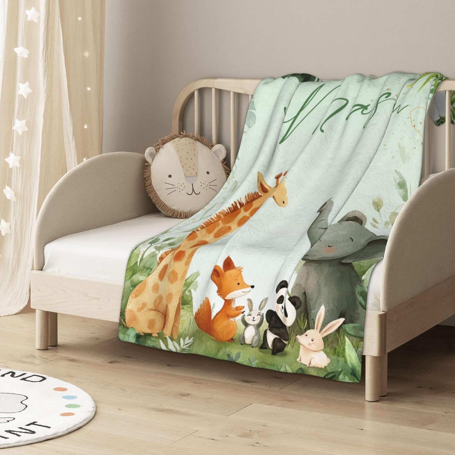Personalized Baby Blankets for Girls | Custom Baby Blanket with Name for Kids | Woodland Animals-c