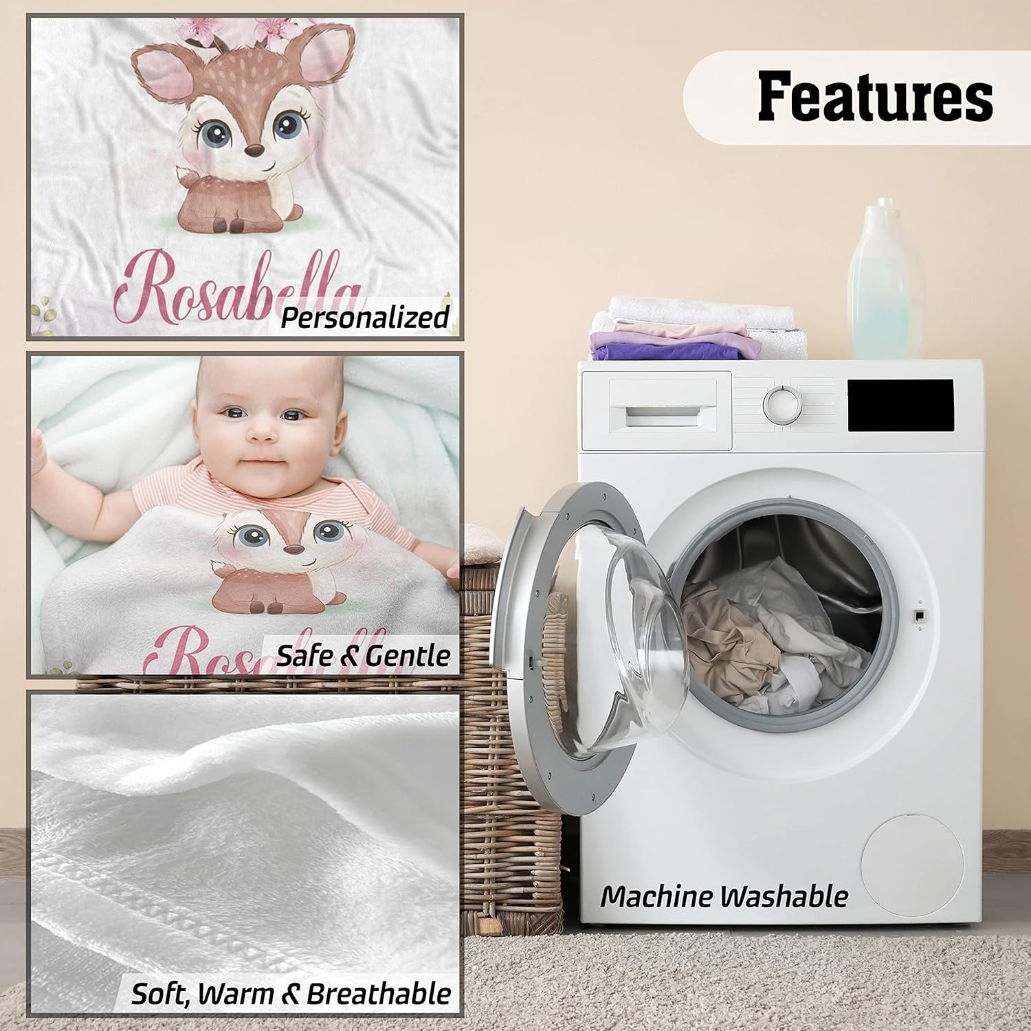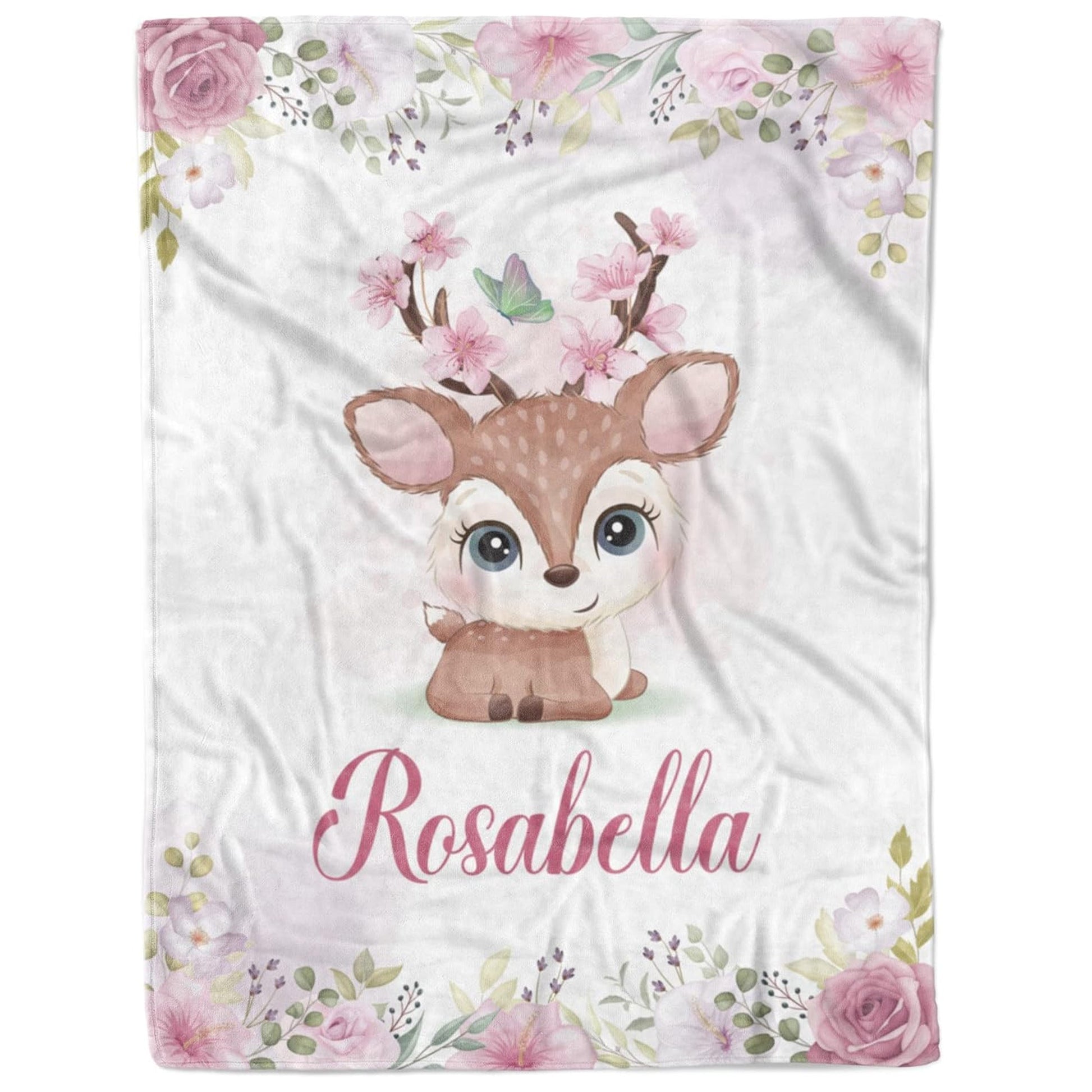 Custom Baby Girl Blanket with Name – Rosabella Deer Design