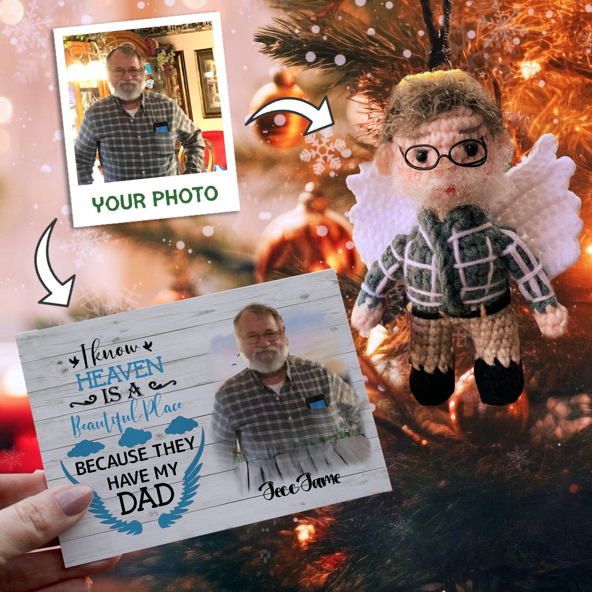 Personalized Ornament Crochet Doll with Photo Card " I Know Heaven Is Beautiful Place"