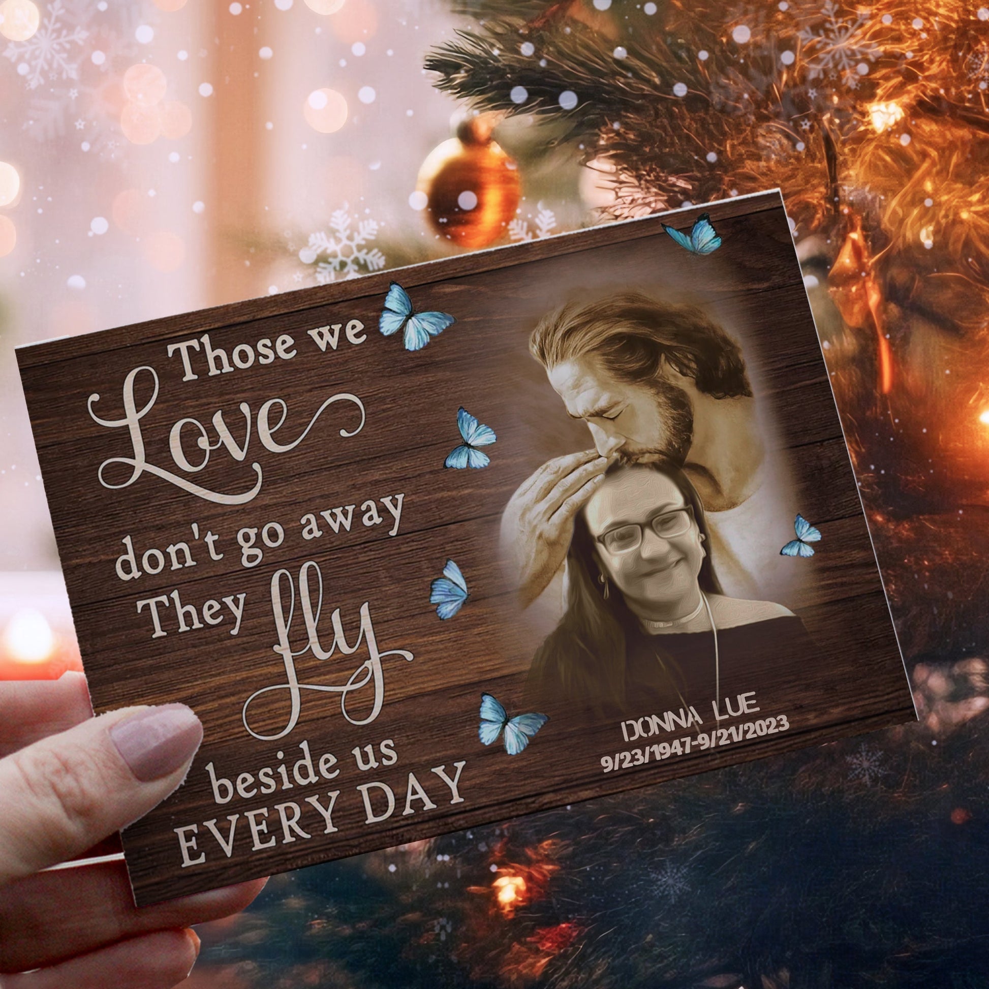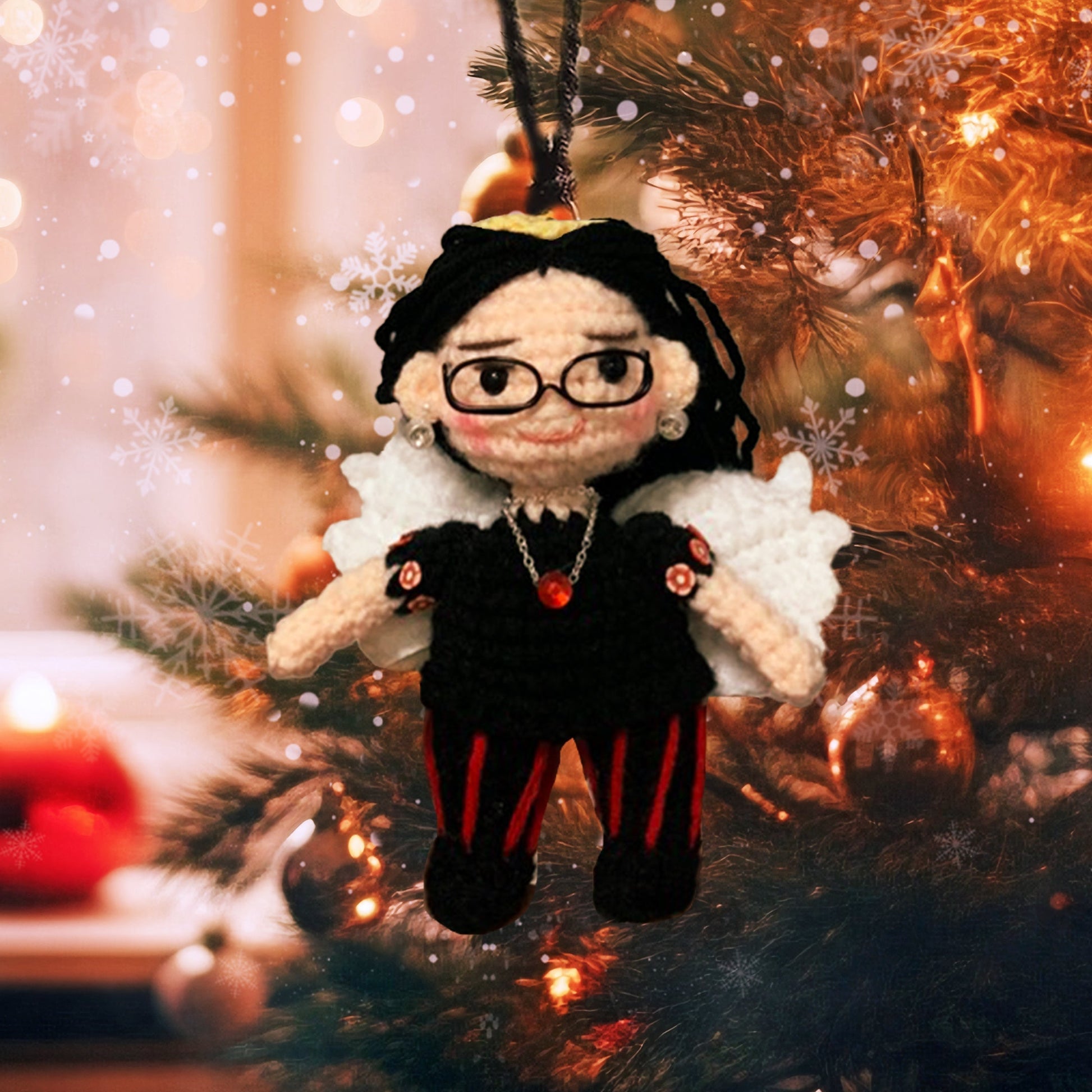 Personalized Ornament Crochet Doll with Photo Card "Safe In God's Hands Those We Love Don't Go Away"