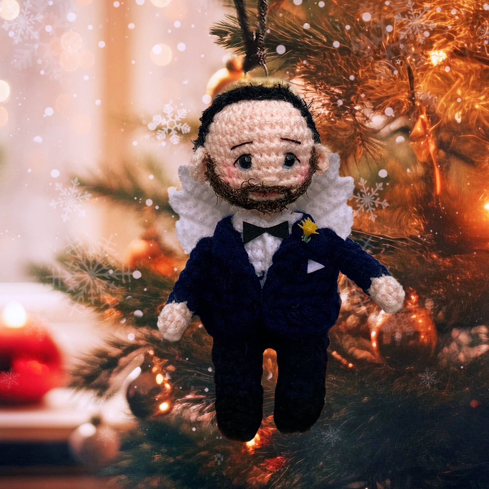 Personalized Ornament Crochet Doll with Photo Card "Safe In God's Hands"