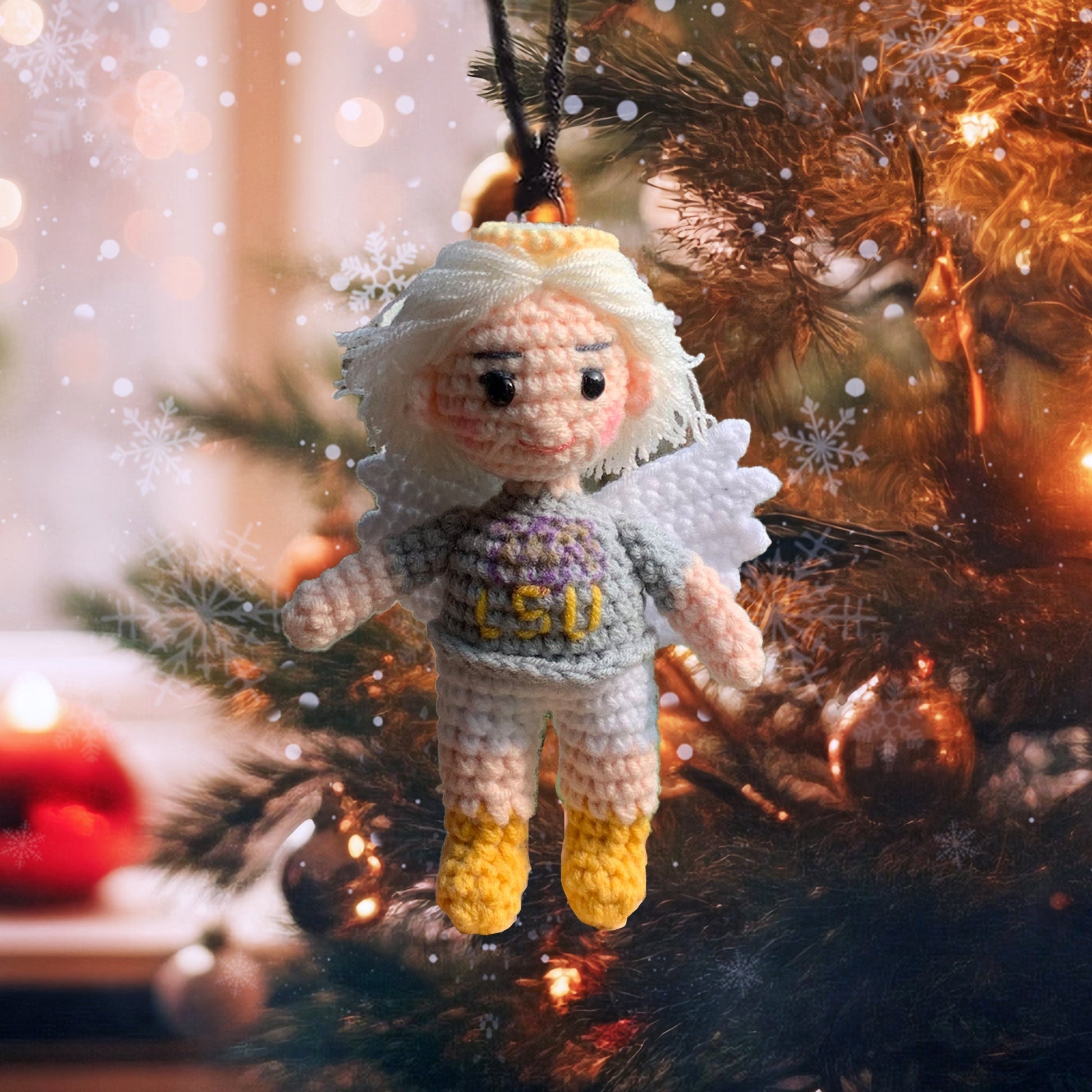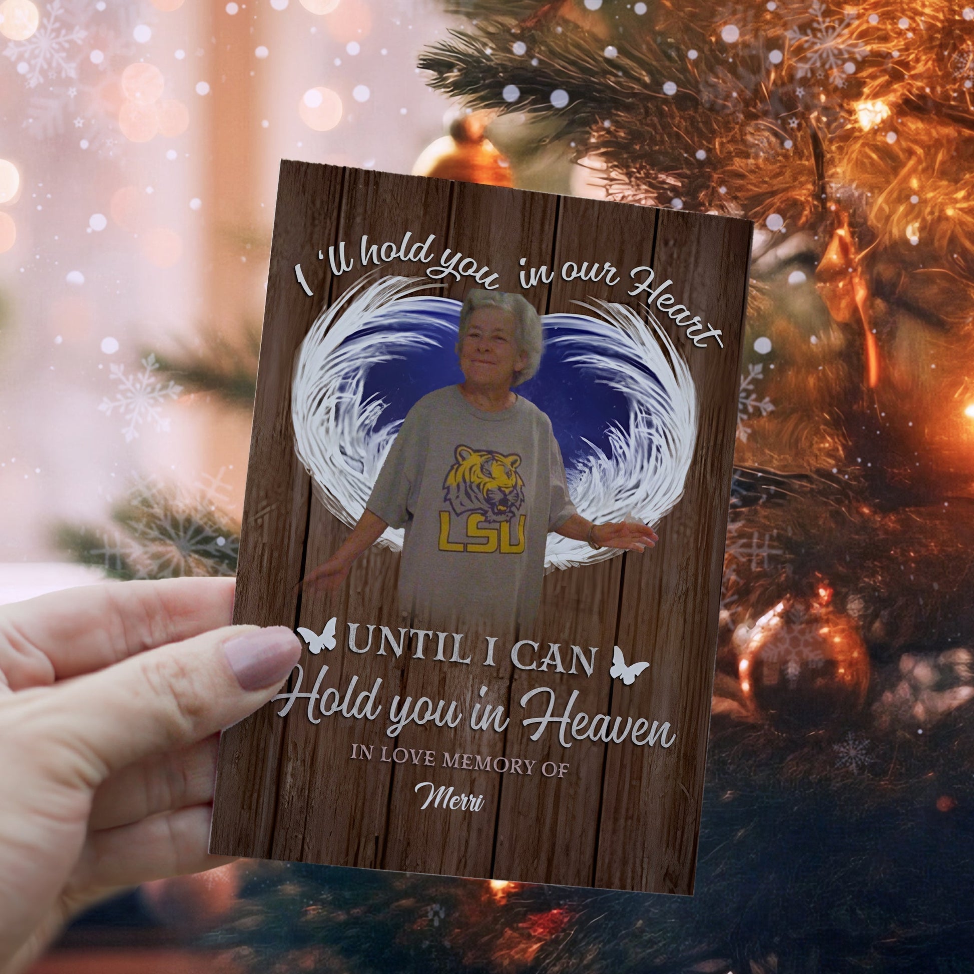 Personalized Ornament Crochet Doll with Photo Card "We'll Hold You In Our Hearts Until We Can Hold You In Heaven"