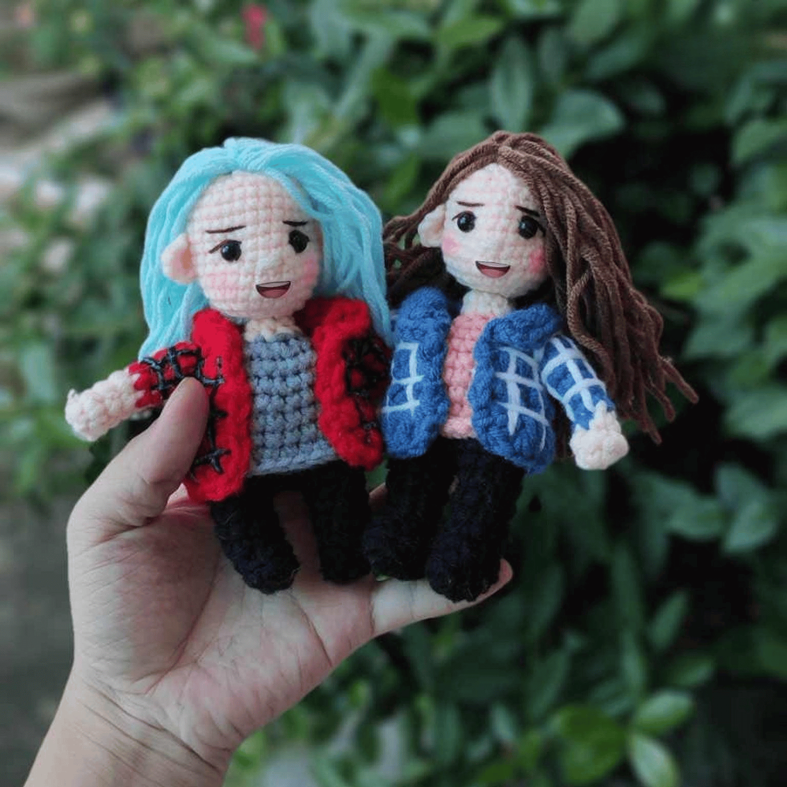 Personalized Crochet Doll with Photo Card "Personalized Sisters"