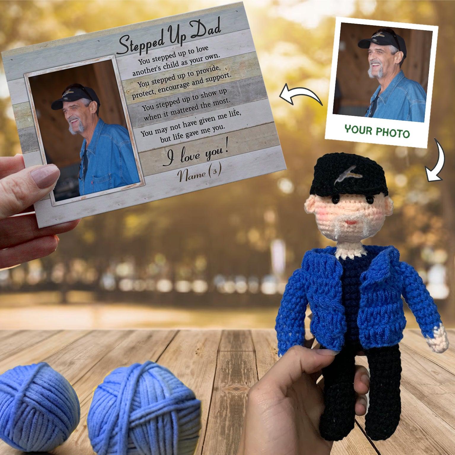 Personalized Crochet Doll with Photo Card "Stepped Up Dad Gift For Father’s Day"