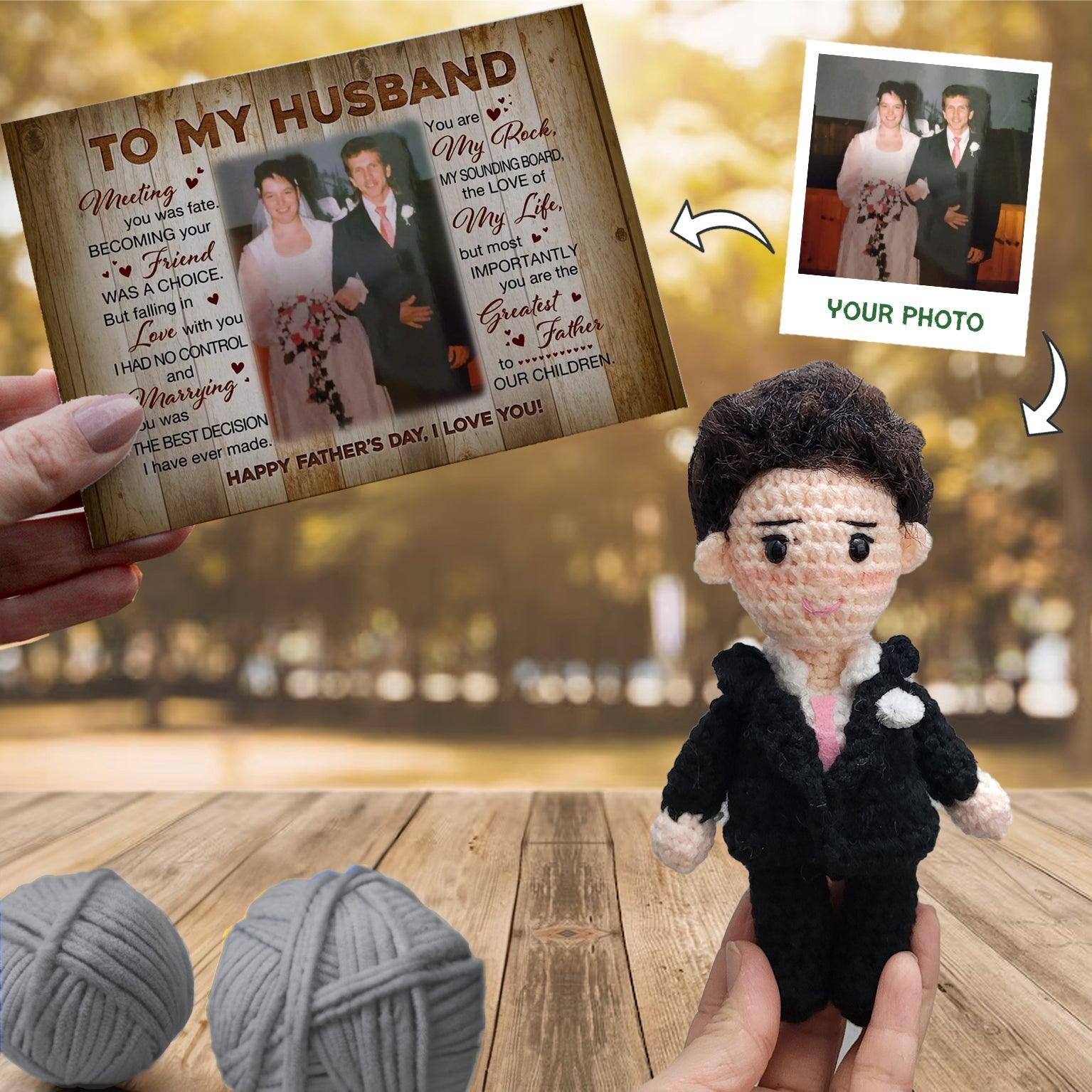 Personalized Crochet Doll with Photo Card "To My Husband Happy Father's Day"