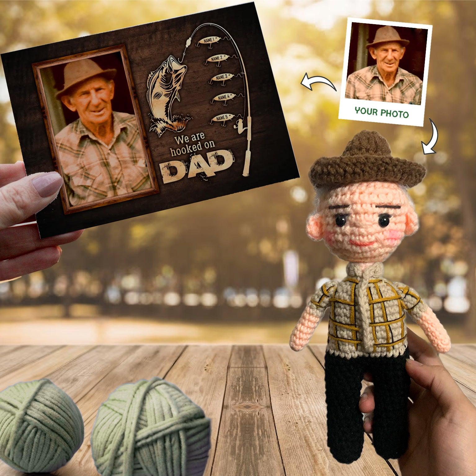 Personalized Crochet Doll with Photo Card "We Are Hooked On Dad"