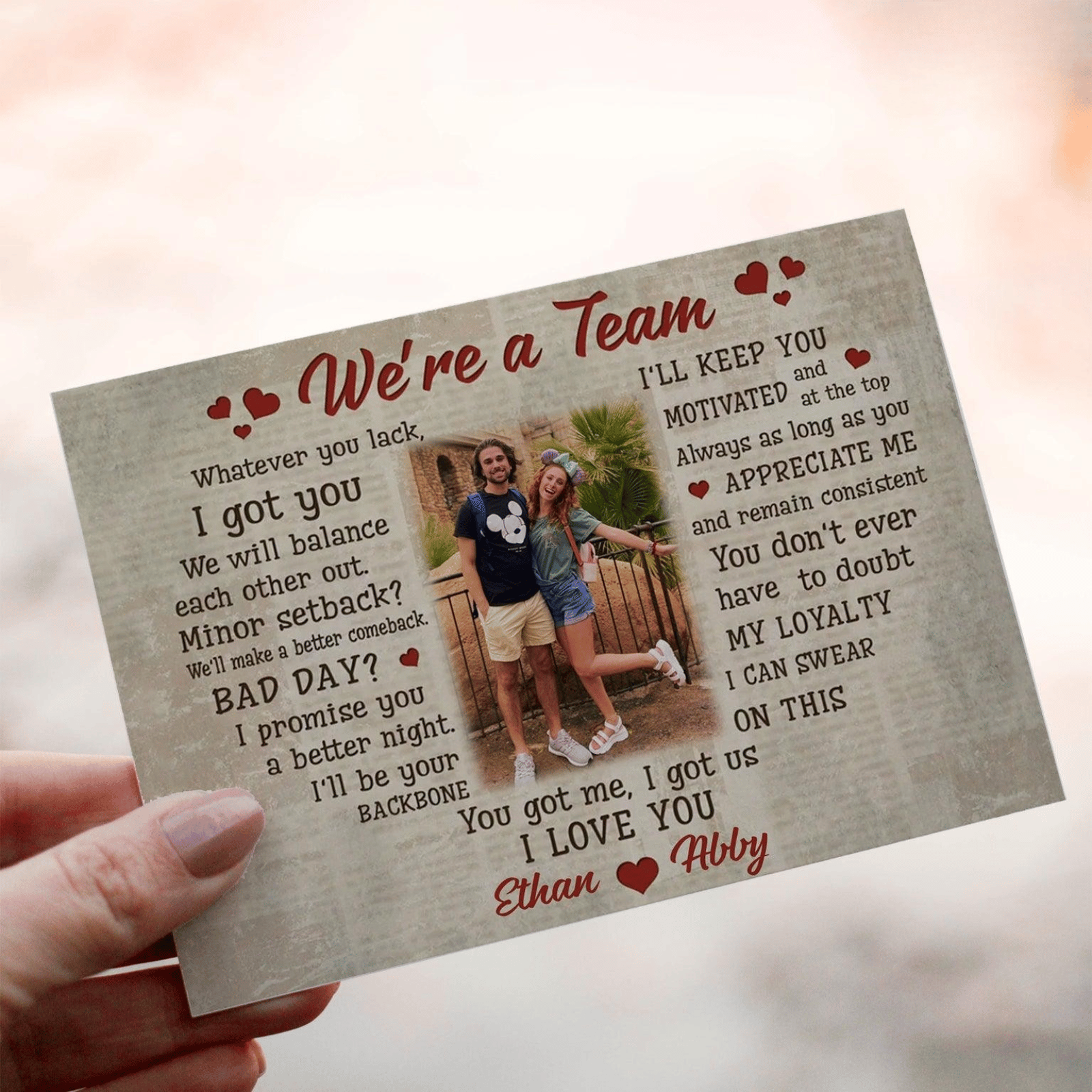 Personalized Crochet Doll with Photo Card "We're a Team"